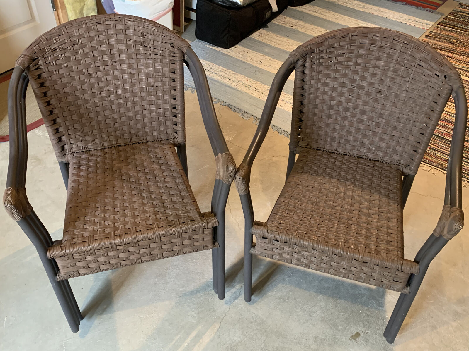 5 Woven metal patio chairs. Easy to stack, waterproof. $250.00