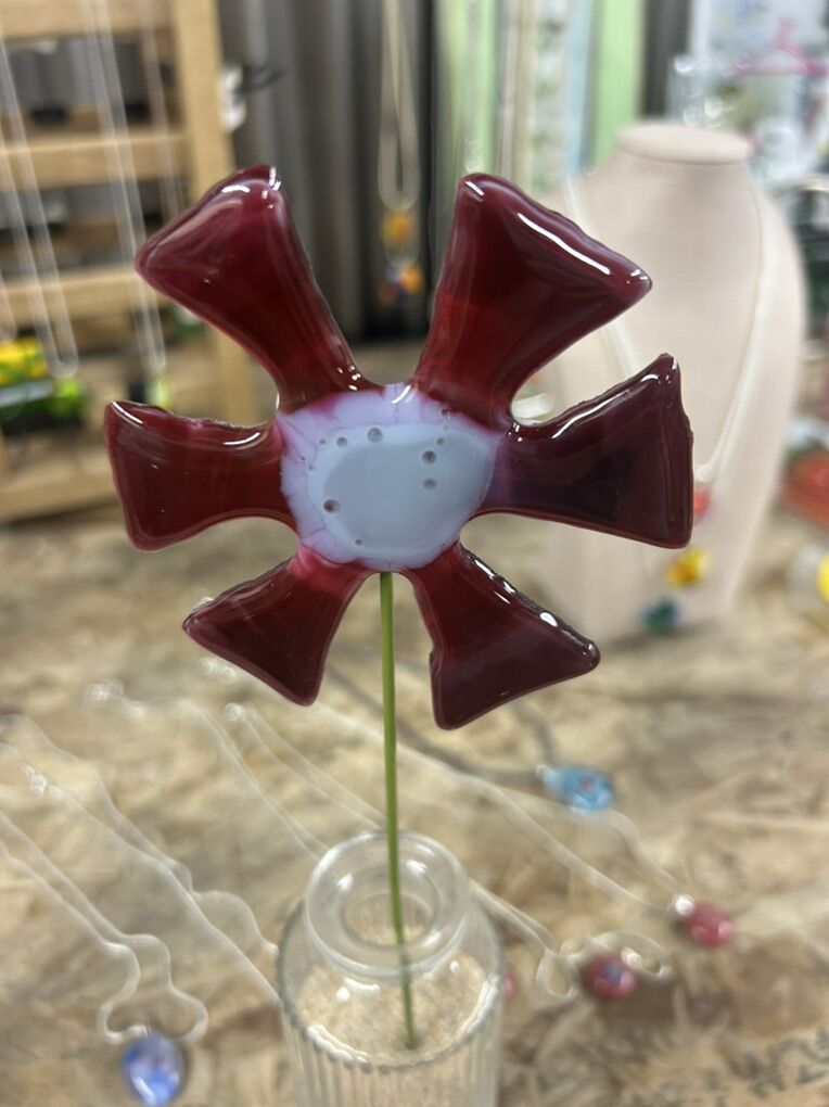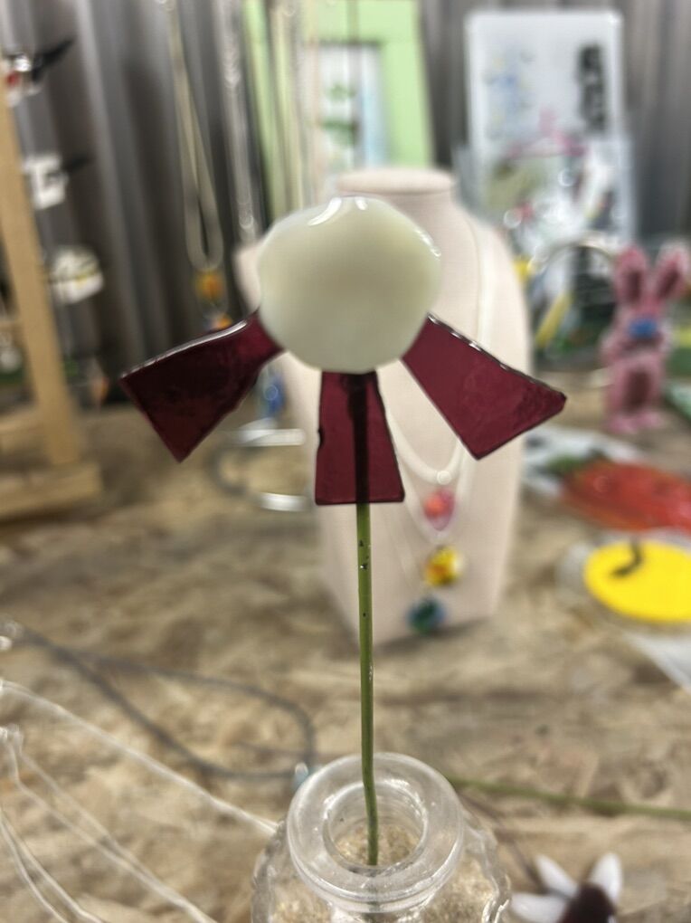 ApplePayHandmade fused glass flowers . Prices range from $8-$14. Please inquire for specific one(s) you may be interested in