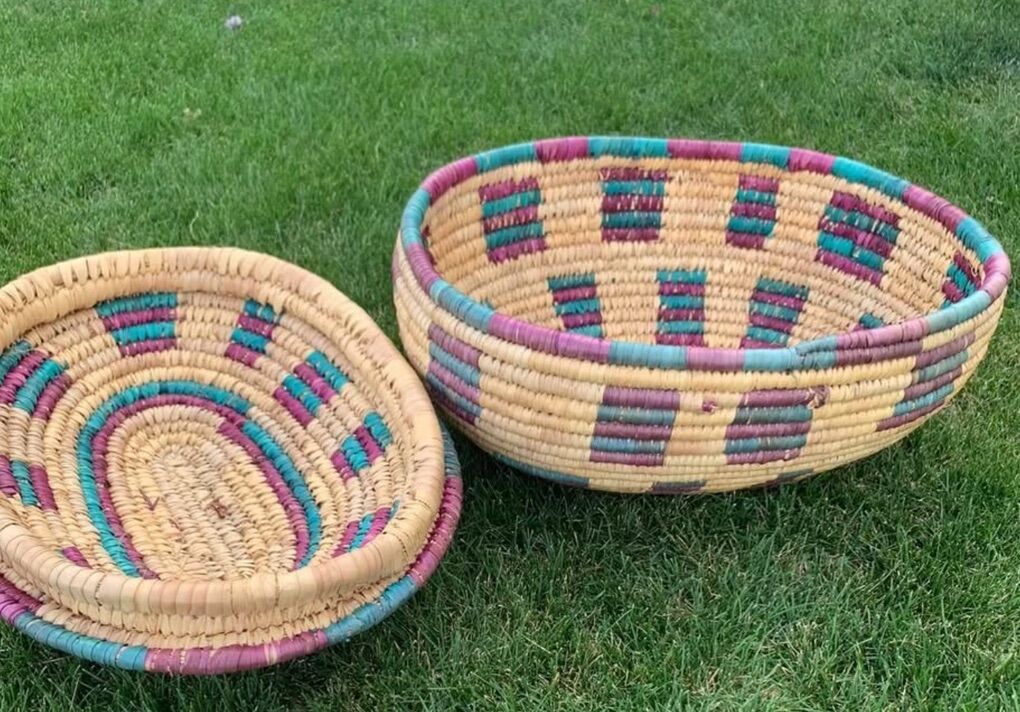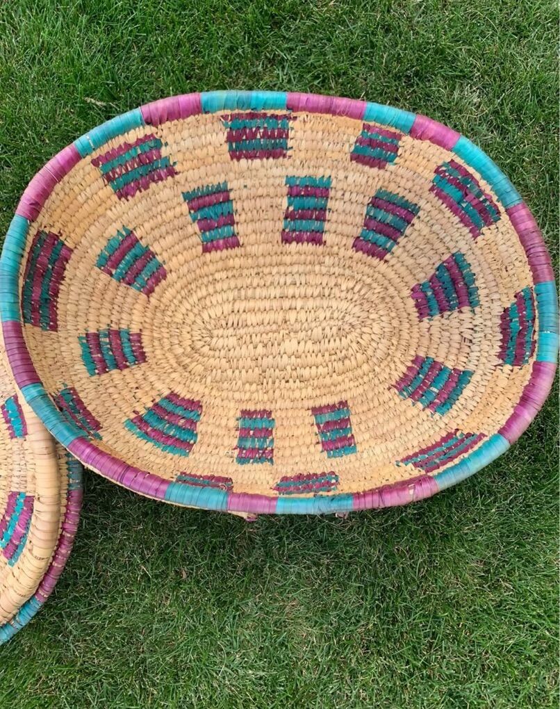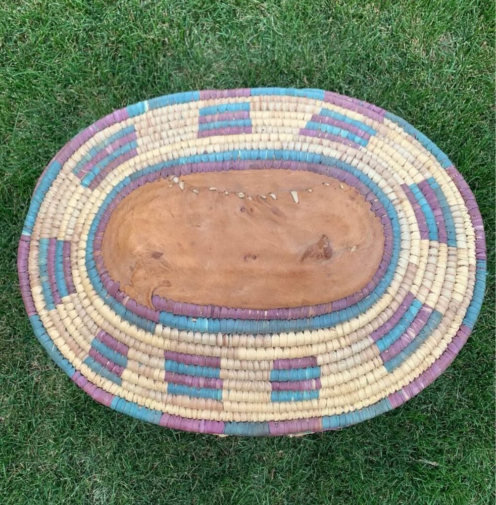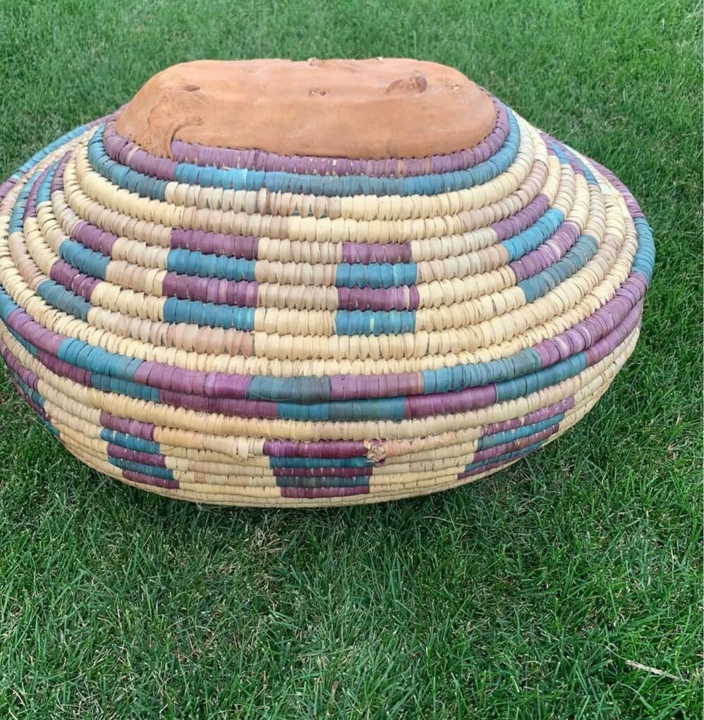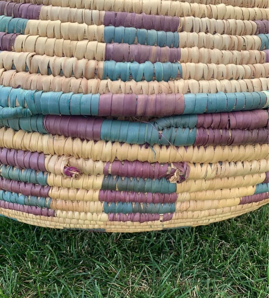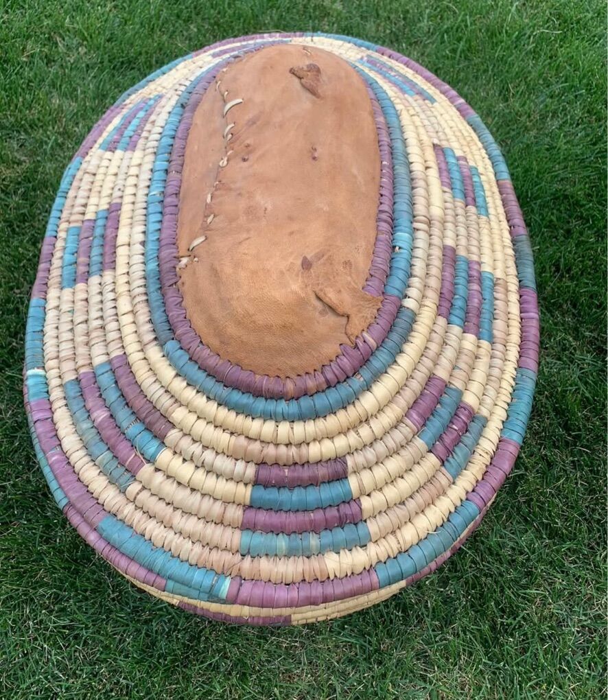 Large Vintage Wicker Leather Oval Woven Basket With Lid NICE Heavy Duty! Dimensions 23.5 long 18 wide