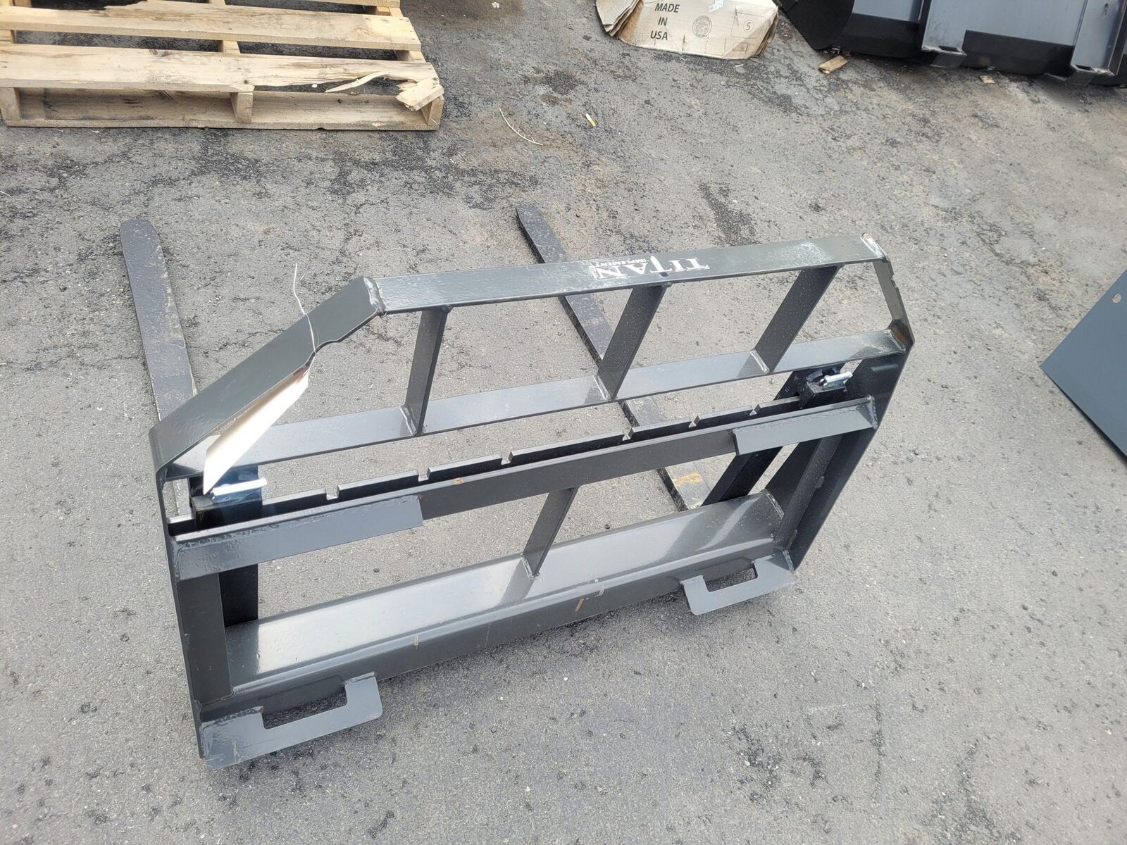 Titan Compact Tractor Pallet Forks & Frame Forks are ideal for lifting pallets, loading lumber, or just about anything else. This lightweight frame offers a 2000 lb load capacity. Available at Young Tractor Morgan