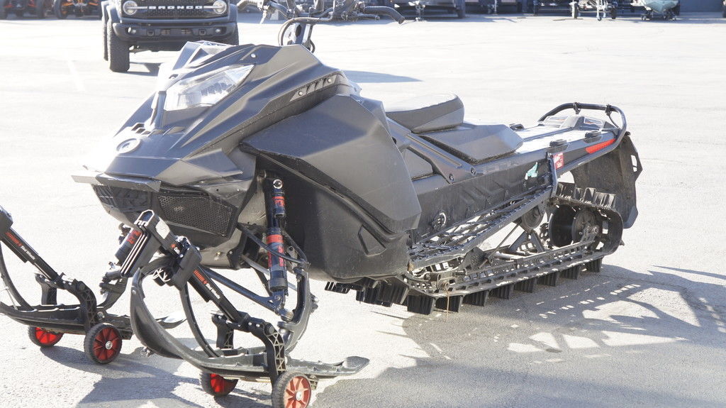 Key Specifications and Features: Engine: Rotax 850 E-TEC Turbo, a 2-stroke, liquid-cooled, turbocharged engine. Displacement: 849 cc. Horsepower: Delivers 165 hp up to 8,000 feet elevation, with an additional 40 hp advantage over non-turbocharged 850 E-TEC engines above 8,000 feet, maintaining consistent power at high altitudes. Features the world’s first factory-built 2-stroke turbocharged engine, designed by Rotax for reliability, emissions compliance, and seamless power delivery with no turbo lag. Chassis and Platform: Built on the REV Gen4 platform, known for its lightweight design and rider-forward ergonomics, offering exceptional balance and responsiveness in deep snow. Centralized mass and optimized layout ensure balanced handling, with a one-piece lightweight hood reducing weight by 6 lbs and improving ventilation for heat dispersion and noise reduction. Suspension: Front Suspension: RAS 3 with a 32-inch ski stance, designed for precise handling and easy sidehill initiation in deep snow. Equipped with KYB 36 Plus shocks for a lighter, responsive feel. Rear Suspension: tMotion rear suspension, optimized for agility and playfulness, making it easier to carve powder and sidehill with less effort. Track: PowderMax Light with FlexEdge, 154 inches long with a 3.0-inch lug height, designed for maximum flotation and traction in deep snow. Full-width rods enhance track durability and performance in powder. Additional Features: E-TEC SHOT Starter: A lightweight starting system that uses the magneto’s charge for subsequent starts after the initial recoil start, reducing weight by eliminating a traditional electric starter. Pilot DS 4 Skis: Provide precise control in deep snow conditions. Adjustable Brake Lever and Short Riser Block: Enhance rider comfort and control. Premium LED Headlights: Improve visibility in low-light conditions. HAC (High Altitude Compensation): Optimizes engine performance for high-altitude environments, ensuring consistent power delivery. Performance and Handling: Designed for deep-snow agility, the Summit X with Expert Package excels in steep terrain, tight trees, and powder, offering effortless handling and quick throttle response. The turbo system is integrated for balanced weight distribution, avoiding the bulk of aftermarket turbo kits, and provides factory-backed reliability with a warranty. The sled’s design emphasizes rider-influenced features, allowing for personalized riding styles and superior control in challenging terrain. Intended Use: Ideal for experienced riders tackling deep snow, high-altitude mountain riding, and technical terrain. The Expert Package includes features tailored for aggressive riding, such as enhanced suspension and track design for maximum performance in powder and steep climbs.