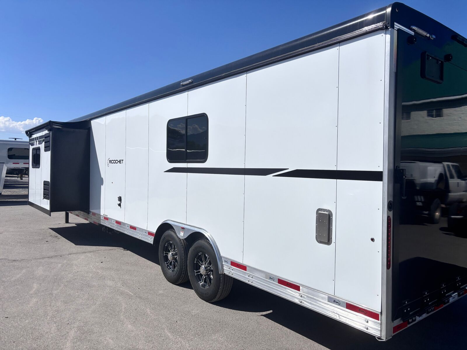 16' Garage 16' LQ with Slide Out Garage Has fold over Sofa Sleepers Perfect for all Side by Sides All Aluminum Frame Hydraulic Jacks