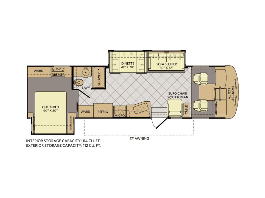 The Southwind Class A by Fleetwood has a uniquely beautiful contemporary styling both inside and out that gives you the freedom to explore without ever leaving the comforts of home. You can plan a weekend away or an extra long stay with the extensive storage space in the Power Platform Plus (select models), that allow you to take everything you need to feel right at home anywhere.
