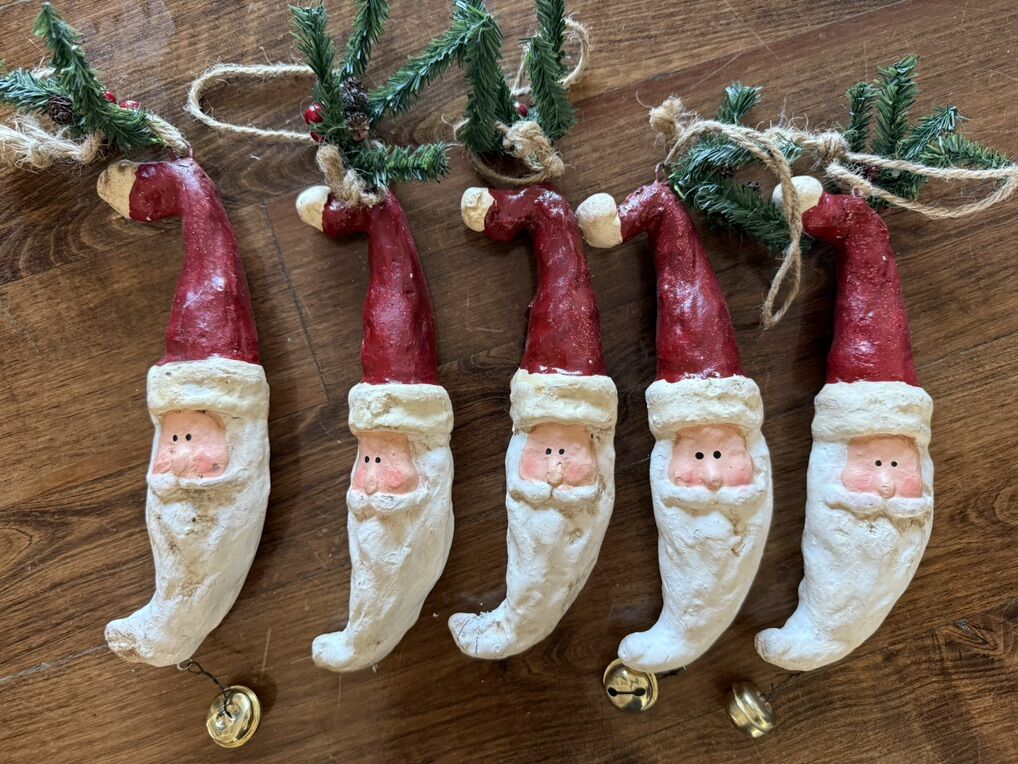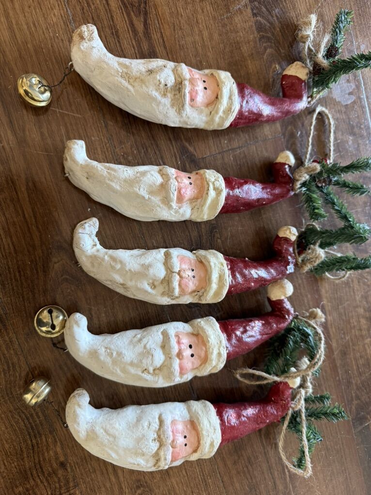 Christmas ornaments Santa Claus 12” tall set of 5 they are missing a couple bells and have scuffs
