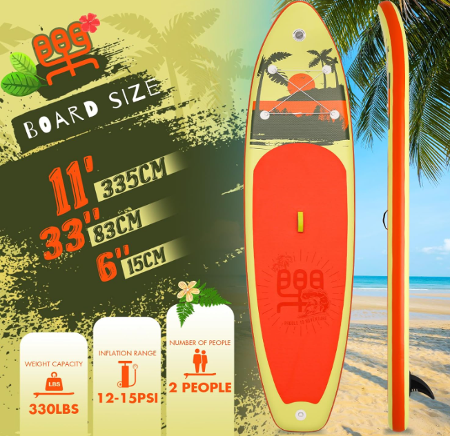 ZelleMaterials and ParametersThe new ultra light military grade double wall PVC is 35% lighter than similar size products, with excellent wear resistance, toughness and long service life. The paddleboards standard size is11' 33" × 6 ", carrying 330 pounds