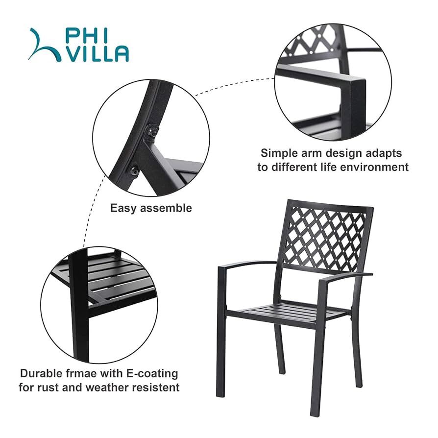 New in Box!!! •Our outdoor dining chair has a stackable design and can be easily stacked to save space. It is a convenient design for stacking and carrying. •The patio chair is made of a sturdy metal iron frame to withstand uneven extrusion. The connection is connected with a sturdy screw to provide you with years of enjoyment on the terrace, lawn, garden, backyard, or other outdoor and indoor area.