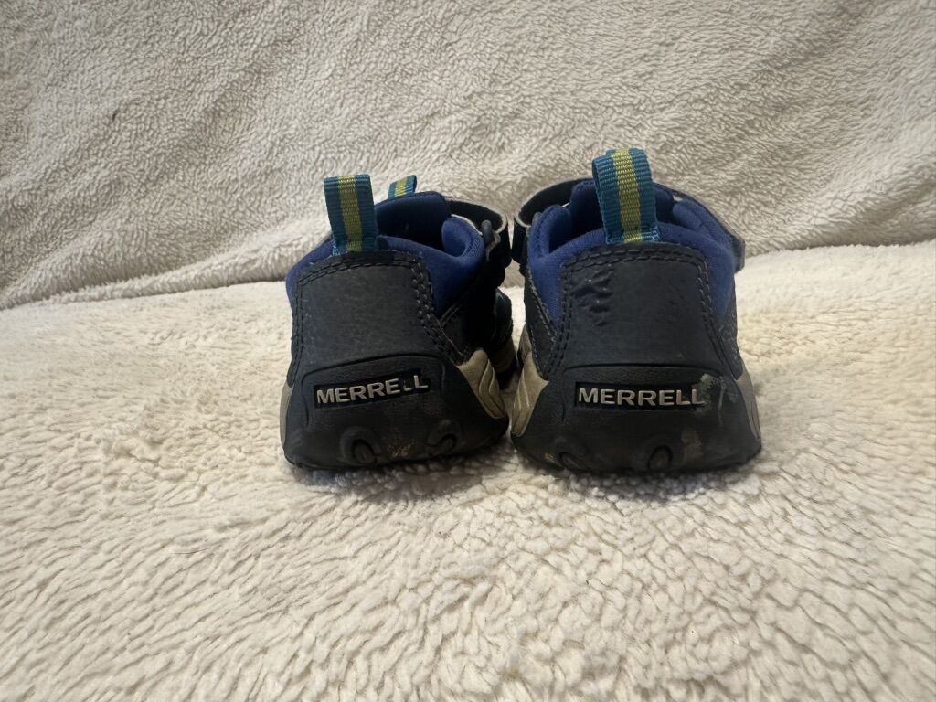 Merrell toddler size 11 blue with lime green trim, hiking or water sandals. These are in good condition, see photos for details. I take cash or Venmo, but cash is preferred. Text is best. 801-201-4446. Check out my other ads for additional sizes and styles