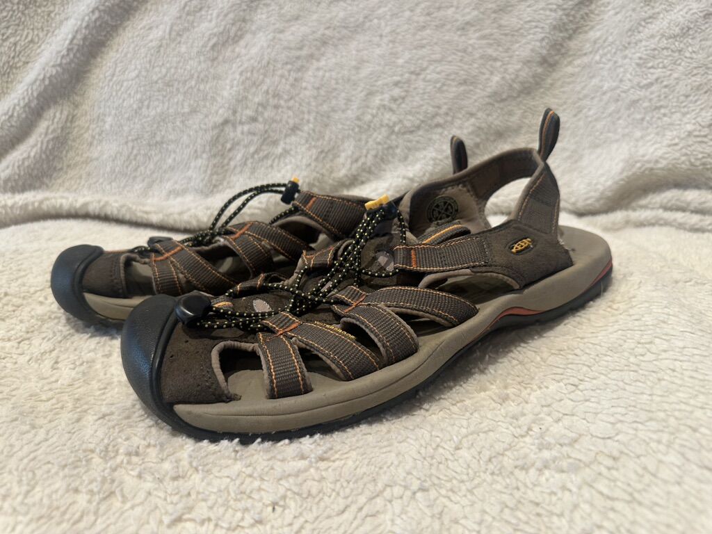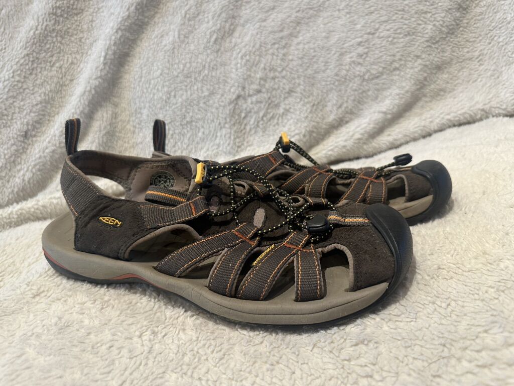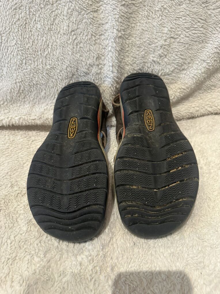 Keen men’s size 10 brown with orange trim, waterproof, sandals. These are in good condition,  see photos for details. I take cash or Venmo, but cash is preferred. Text is best. 801-201-4446. Check out my other ads for additional sizes and styles.