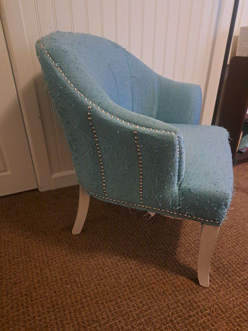 blue upholstered chair