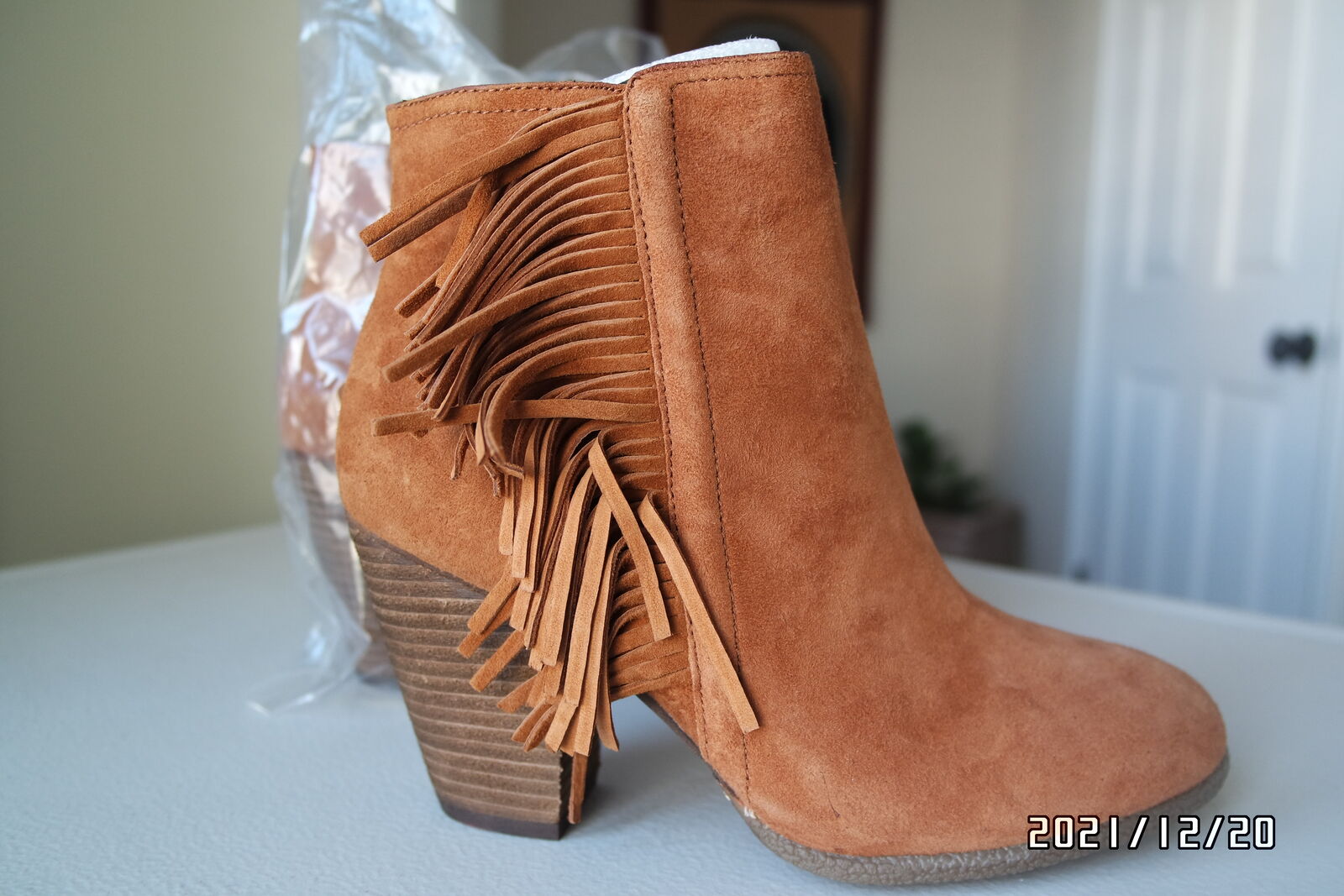 Venmo"New" Vince Camuto Hayzee Suede Fringe Ankle Boots in a rust/brown color