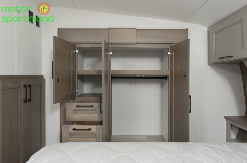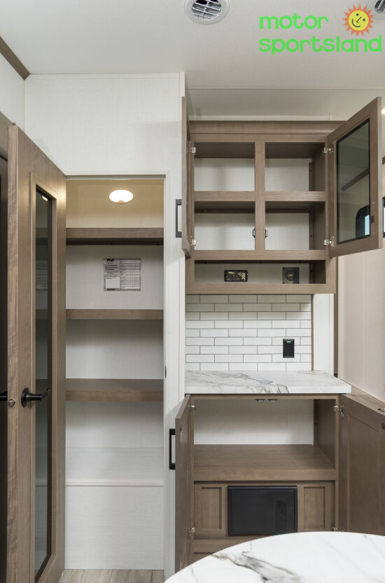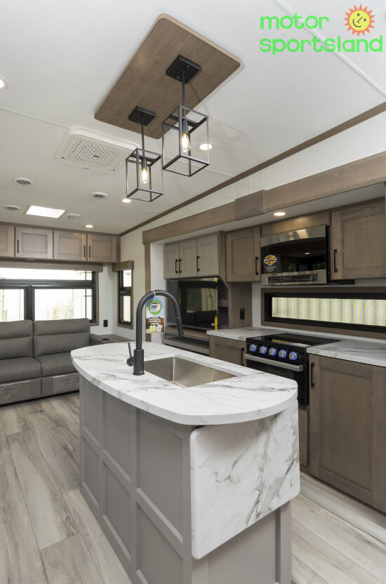 Unmatched Comfort: Spacious interiors with plush seating and ample sleeping arrangements ensure everyone relaxes in style. Luxury at Every Turn: High-end finishes, modern appliances, and a sleek design make every moment onboard feel indulgent. Family-Friendly Layout: Thoughtful floor plans with plenty of storage and entertainment options keep the whole crew happy. Durable Construction: Built to last, this fifth wheel is ready for rugged adventures without compromising on sophistication. Versatile Living Spaces: Perfect for weekend escapes or extended journeys, offering flexibility for all your travel needs.