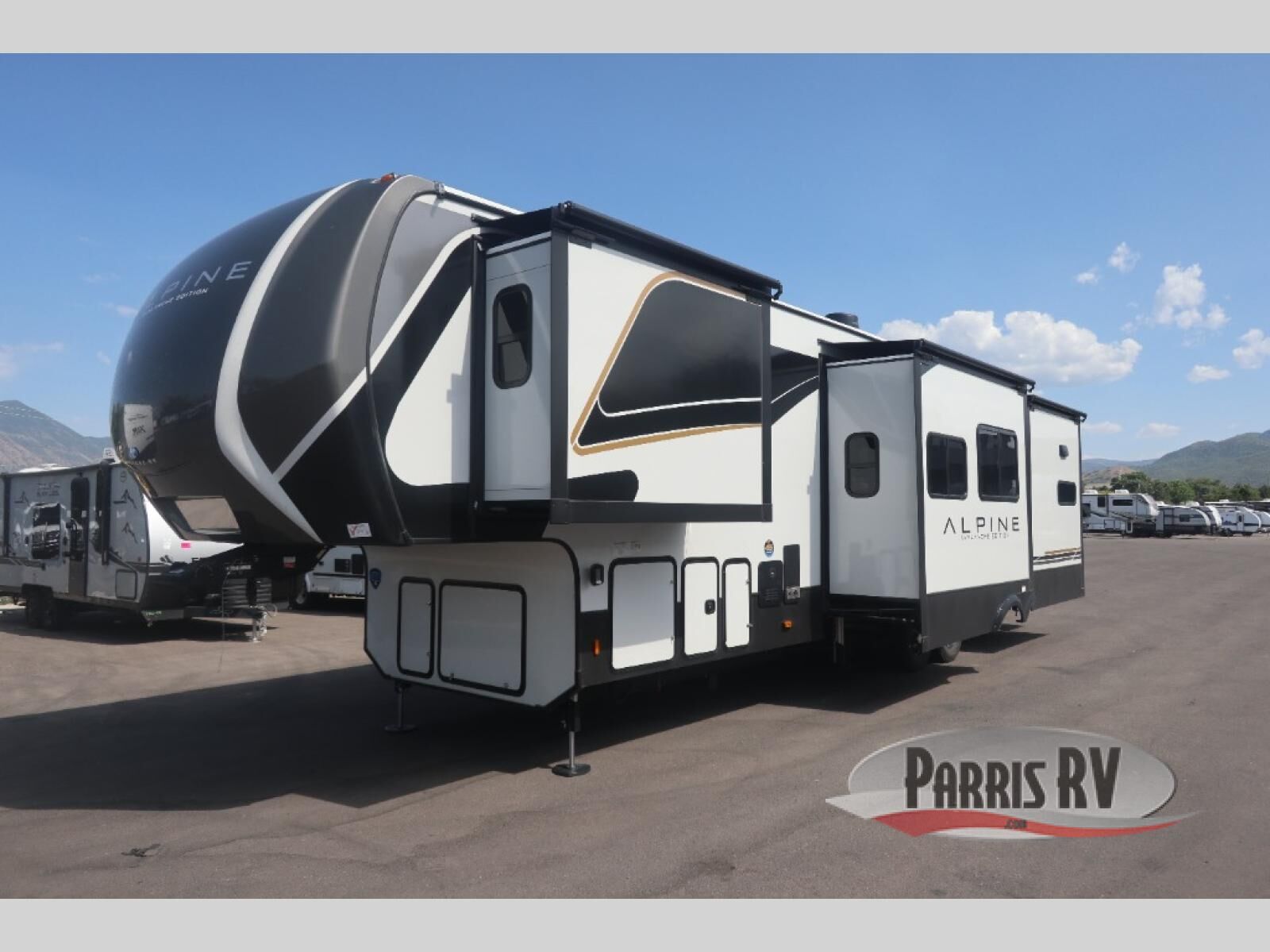 With any Keystone luxury Alpine Avalanche Edition fifth wheel, you will experience wide-body construction that allows you to stretch out and stay awhile during any season thanks to the Polar Pack All Season Protection that includes a heated and enclosed underbelly, an Astro foil reflective layer on the roof, front and rear walls, and two static attic vents, plus more! The interior offers hardwood slide out fascia with wood accents, crown molding, plus your choice of modern interior design. There are many more Keystone exclusives, like the Tru-Fit slide construction, the in-floor heating ducts, KeyTVTM, and much more to bring you a full-packed, luxury fifth wheel!