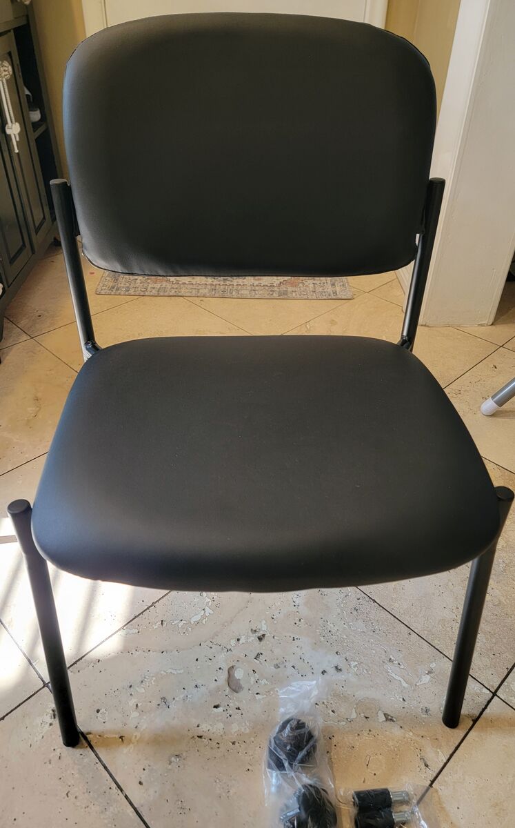 New Assembled HON Scatter Black Fabric Stackable Guest Chair Rollable with Casters. Generously-cushioned fabric back and seat ensure exceptional comfort.