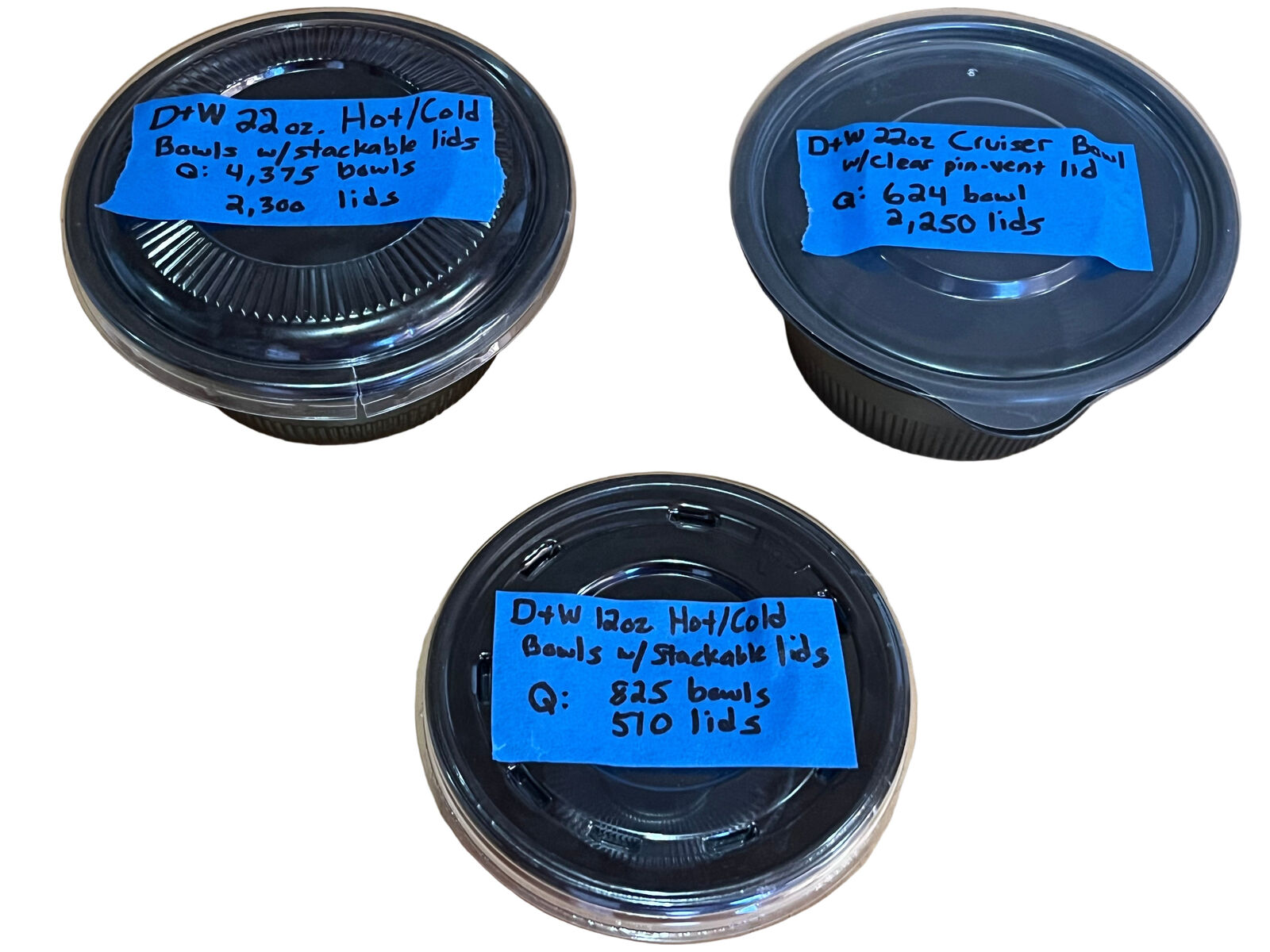 22 oz. Hot/Cold (lot of 4,375 bowls & 2,300 lids) - $100.00.