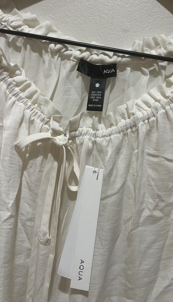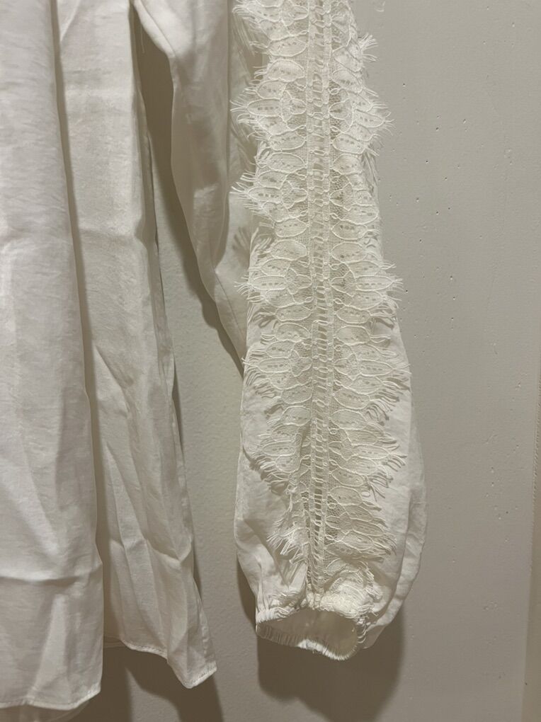 Aqua Brand NWT Lightweight Oversized Loose Fit Long Sleeved Blouse Shirt - Women’s Size XS - tag says white though I’d consider it an off white - with intricate and beautiful lace design down the sleeves and front tie - style AQ6FB038 - brand new with tags.