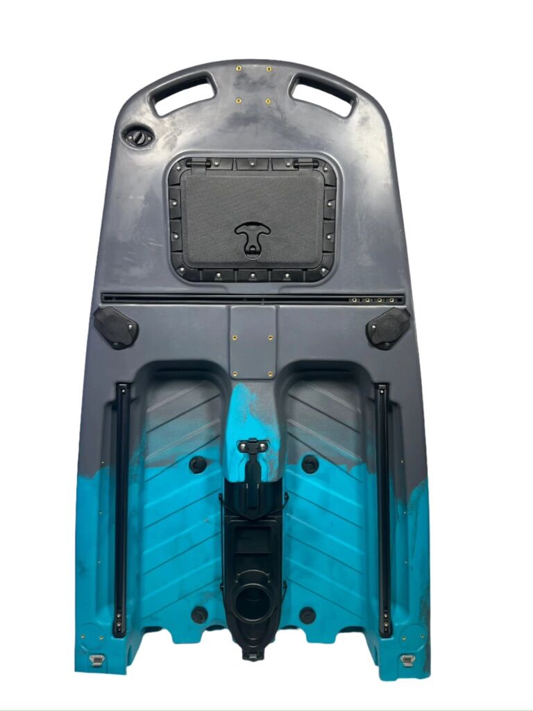 Bull Shark Solo is a versatile and stable one-person kayak designed for both fishing and leisurely cruising. For those looking for extra space, the option to add a center module and transform it into a two-person kayak is available for purchase at a later time. Its compact size makes it easy to handle and transport, ideal for fishing in hard-to-reach places. Equipped with our innovative Waque propeller drive system, the kayak offers instant reverse and efficient, quiet, and non-fatiguing propulsion similar to bicycle pedals. The quick-drying outdoor fabric seats ensure maximum comfort for extended hours on the water. With a convenient dry well on the bow and multiple cable routing options, all your gear and accessories can be stored easily. Additional storage space is provided by a second dry well on the stern. The tri-hull design provides stability for standing, while the modular design allows for easy storage, transportation, and assembly. The Bull Shark Solo comes equipped with rod holders and track mounts for attaching accessories