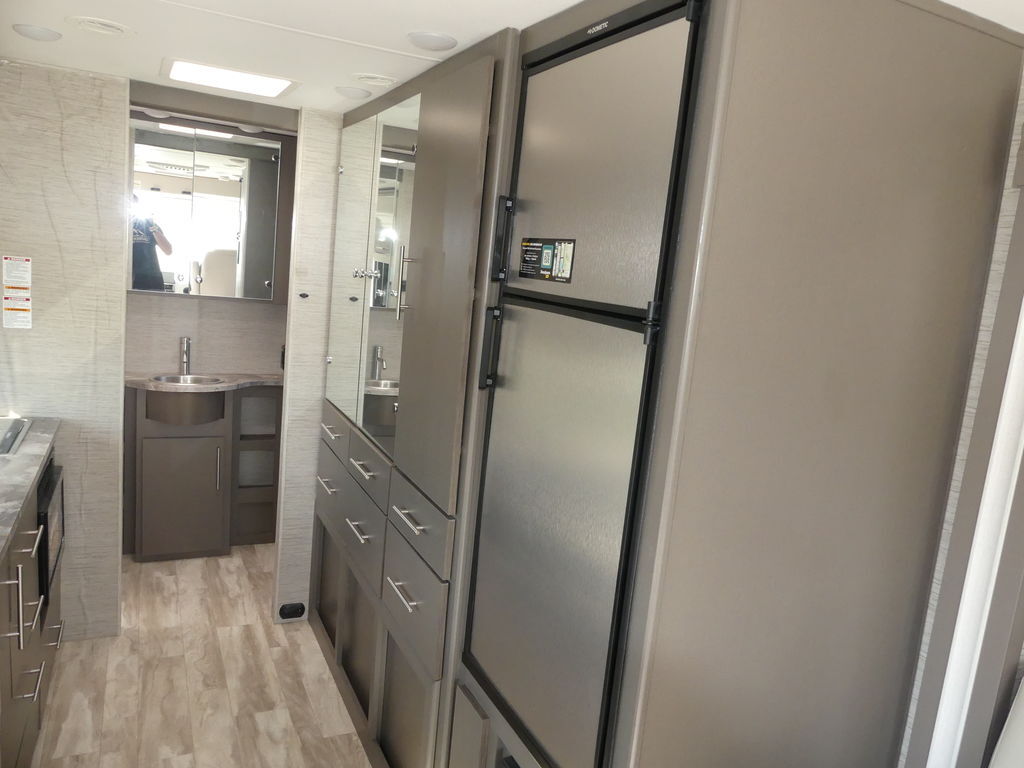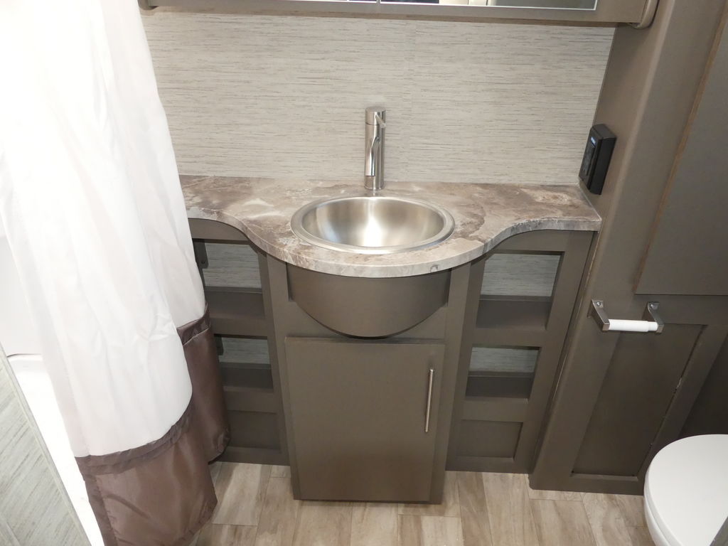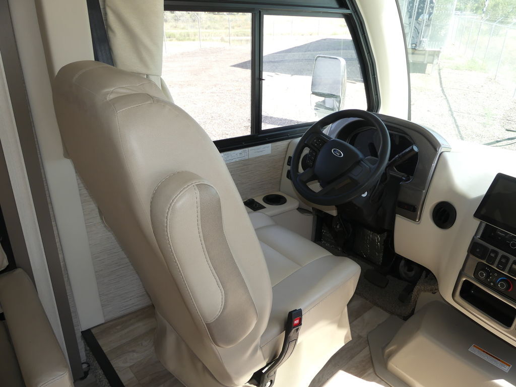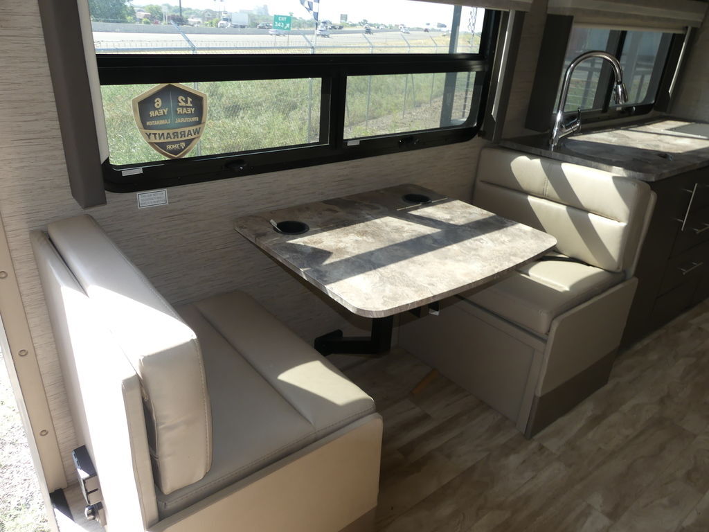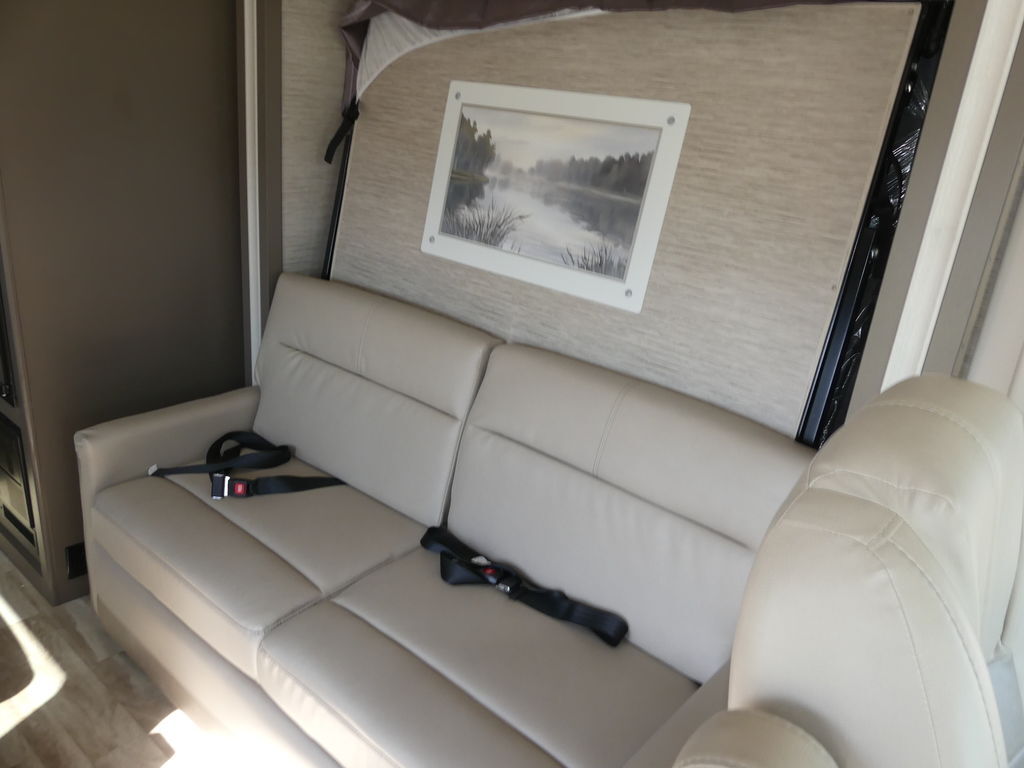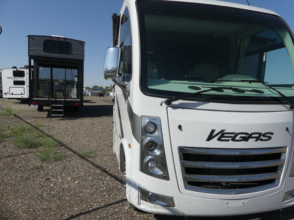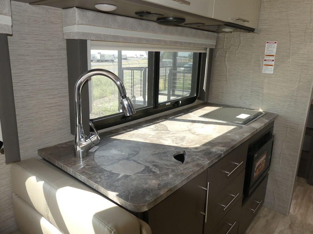 Vegas has a 10-inch touchscreen dash radio with BlueTooth® connectivity, Apple® CarPlay®, Android Auto™ and comes SiriusXM® radio-ready. The leatherette captain’s chairs are comfortable for cross-country drives and swivel, recline and become part of the living area when parked. You can continue your road trip playlist because the living area speaker is tied to the dash radio.