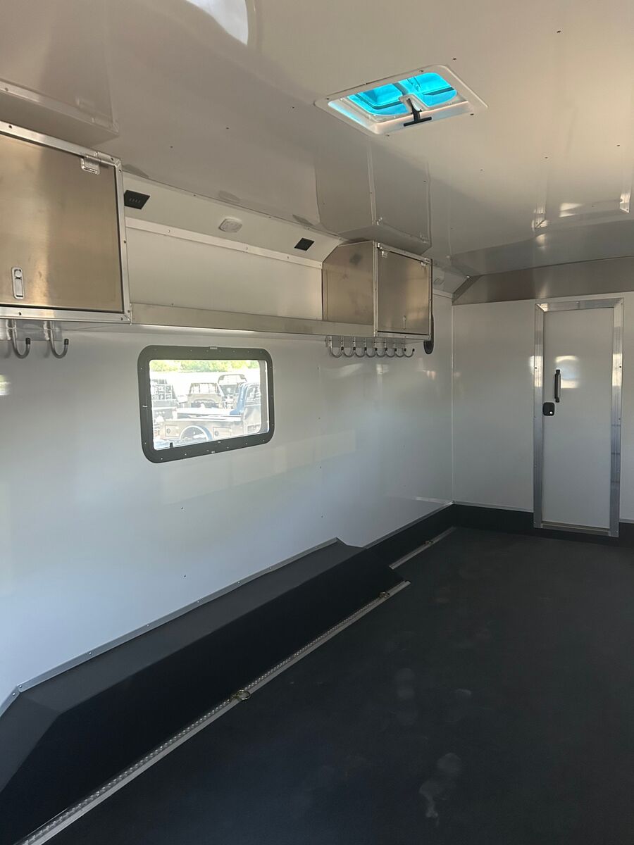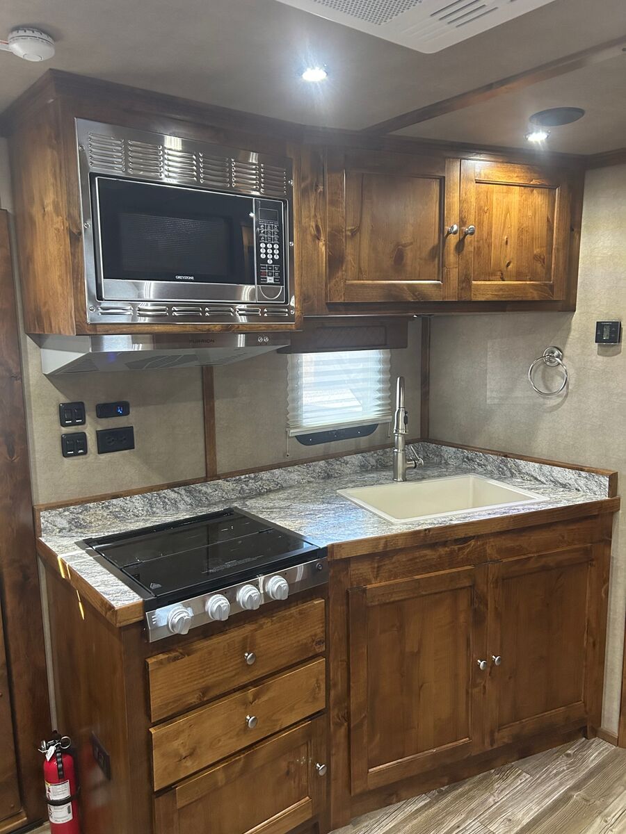 Trailer Has 14' Living Quarters Slide out with Sofa 20' Garage You asked and we delivered! Finally a well built toy hauler that has the strength and quality to last for years of memorable use! Galvanized Structural Tube Frame Galvanized structural tube frame, offers you peace of mind knowing your trailers structure will not corrode from the inside out and also give you a 18-20% stronger frame over trailers framed with raw black steel and 30% stronger than trailers framed with aluminum tubing. 0.50 Aluminum Exterior Bonded w/ 3M Technology 25% stronger than welds and mechanical fasters. 0.50 Aluminum Exterior Bonded w/ 3M Technology 25% stronger than welds and mechanical fasters. Vortex Rubber Vortex rubber spray coating is sprayed to all the exposed galvanized sheeting and tubing. This gives your trailer a smooth, sharp finished look and adds protection and strength to your trailer. Most importantly is makes for the strongest, quietest trailer on the market! Quality Built LQ interior w/ Hardwood cabinets