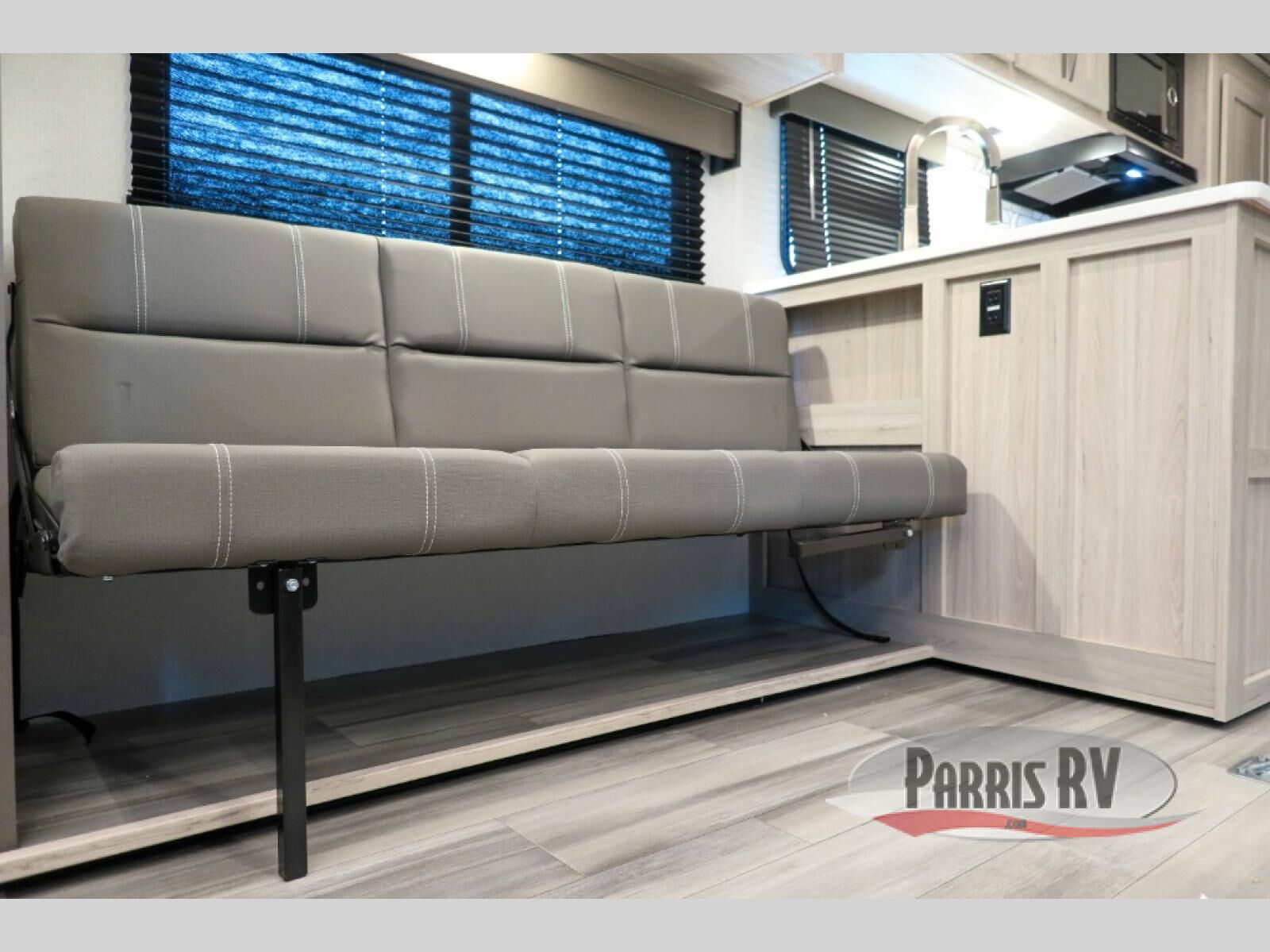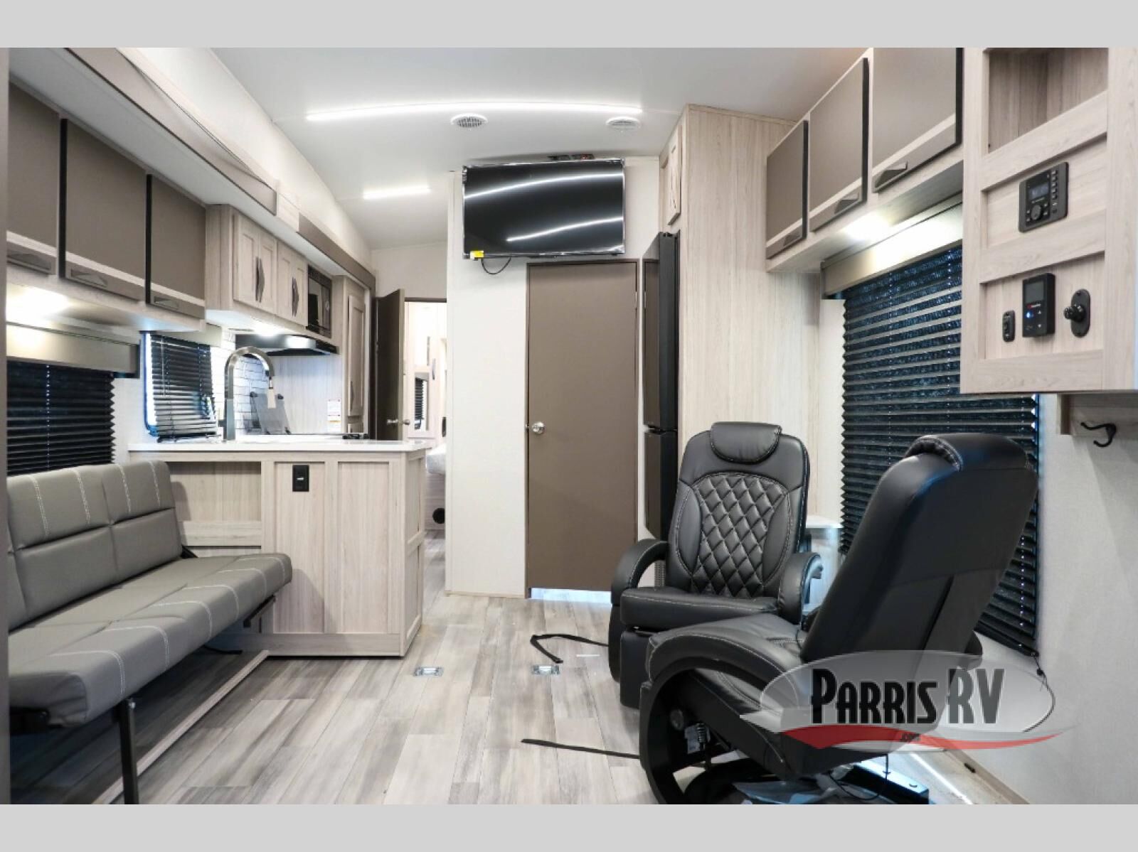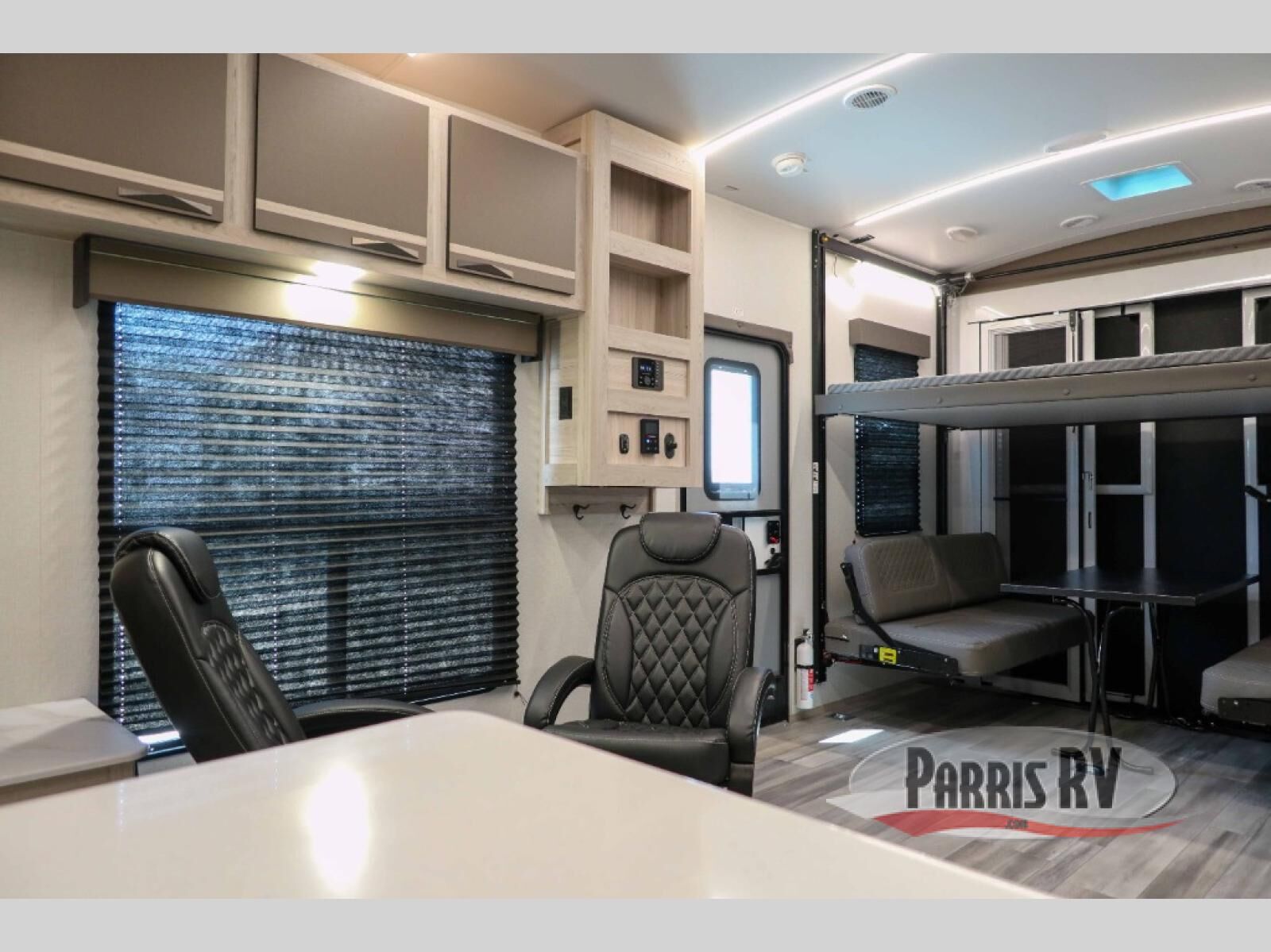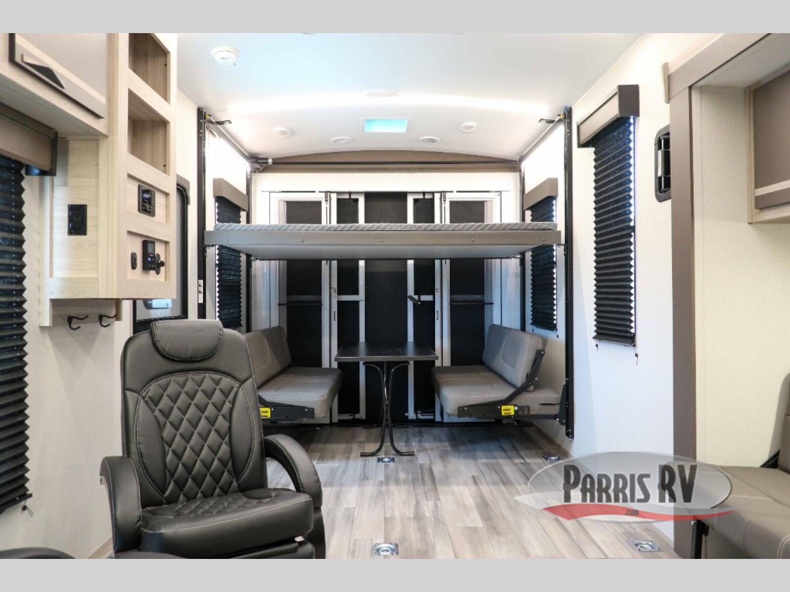 You can't go wrong with this dual entry toy hauler in tow! Once you arrive at the campground, fill up the bikes using the convenient 30 gallon fuel station, then head out on a trail or two! There is a dual entry bath on board that will allow you to clean up before heading to the kitchen to start dinner. You will love the large slide out that will provide more space when cooking, and there is a sofa with a table to dine at. You may just want to kick back on the dual lounge chairs before starting the dishes. Sleeping space can be found on the king bed in the front bedroom, or on the opposing sofas and power queen bed in the garage!