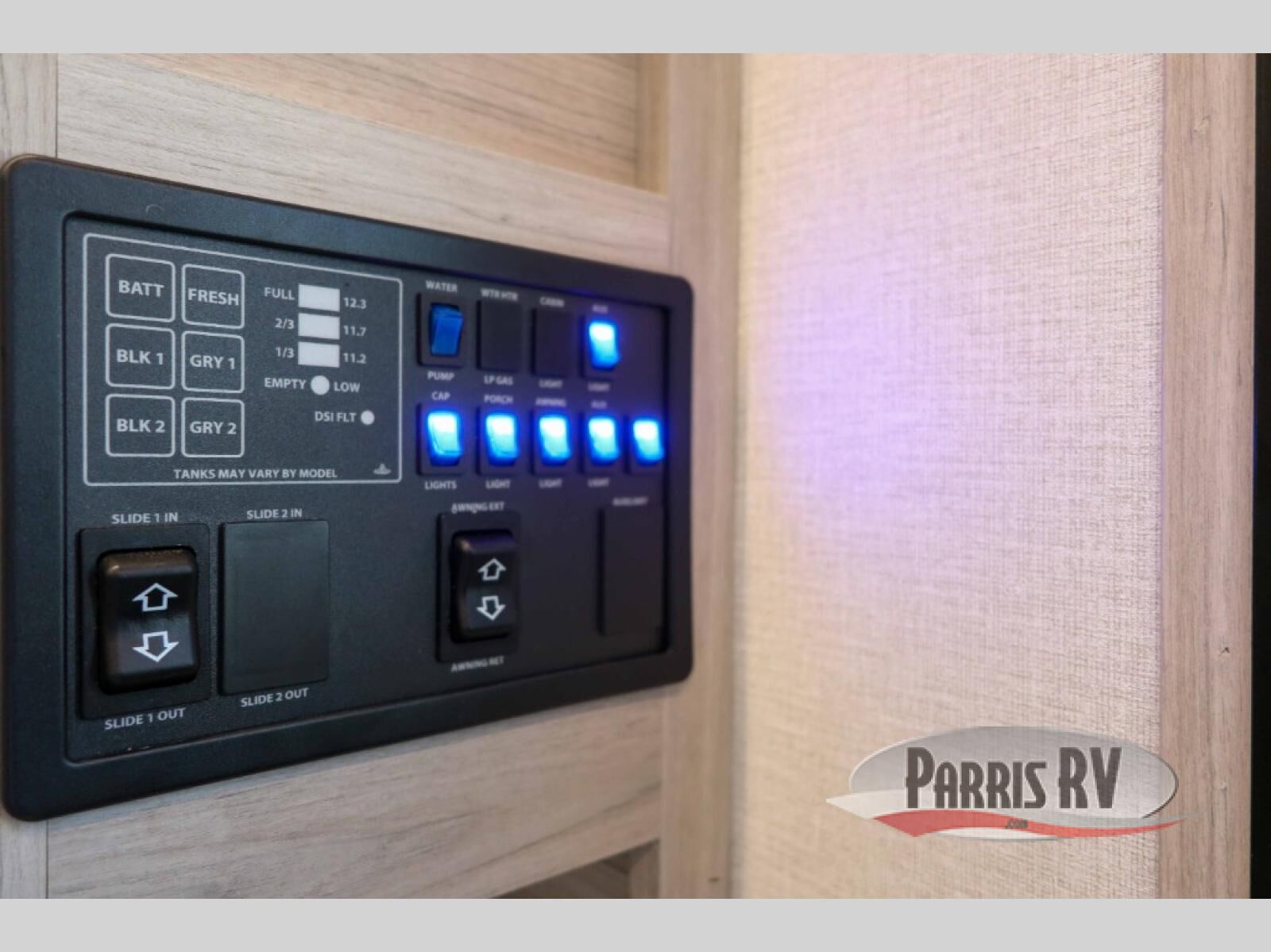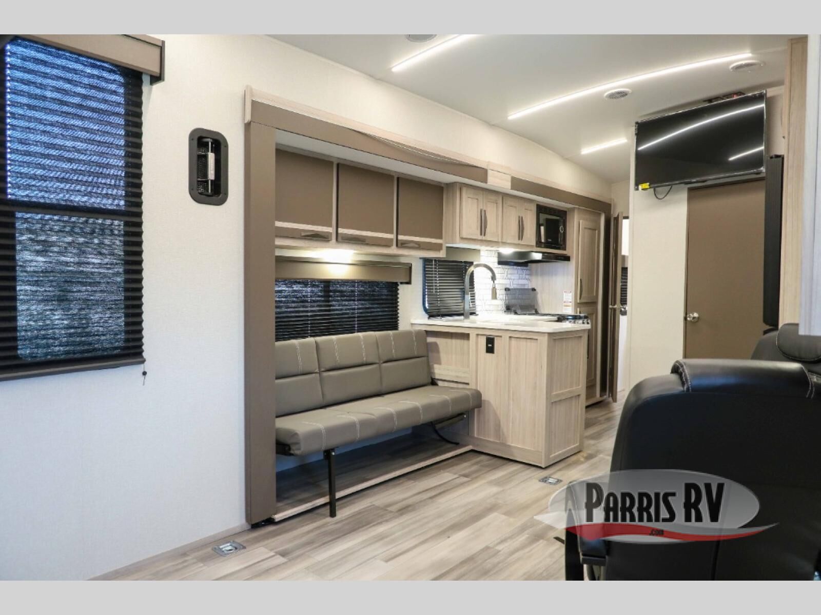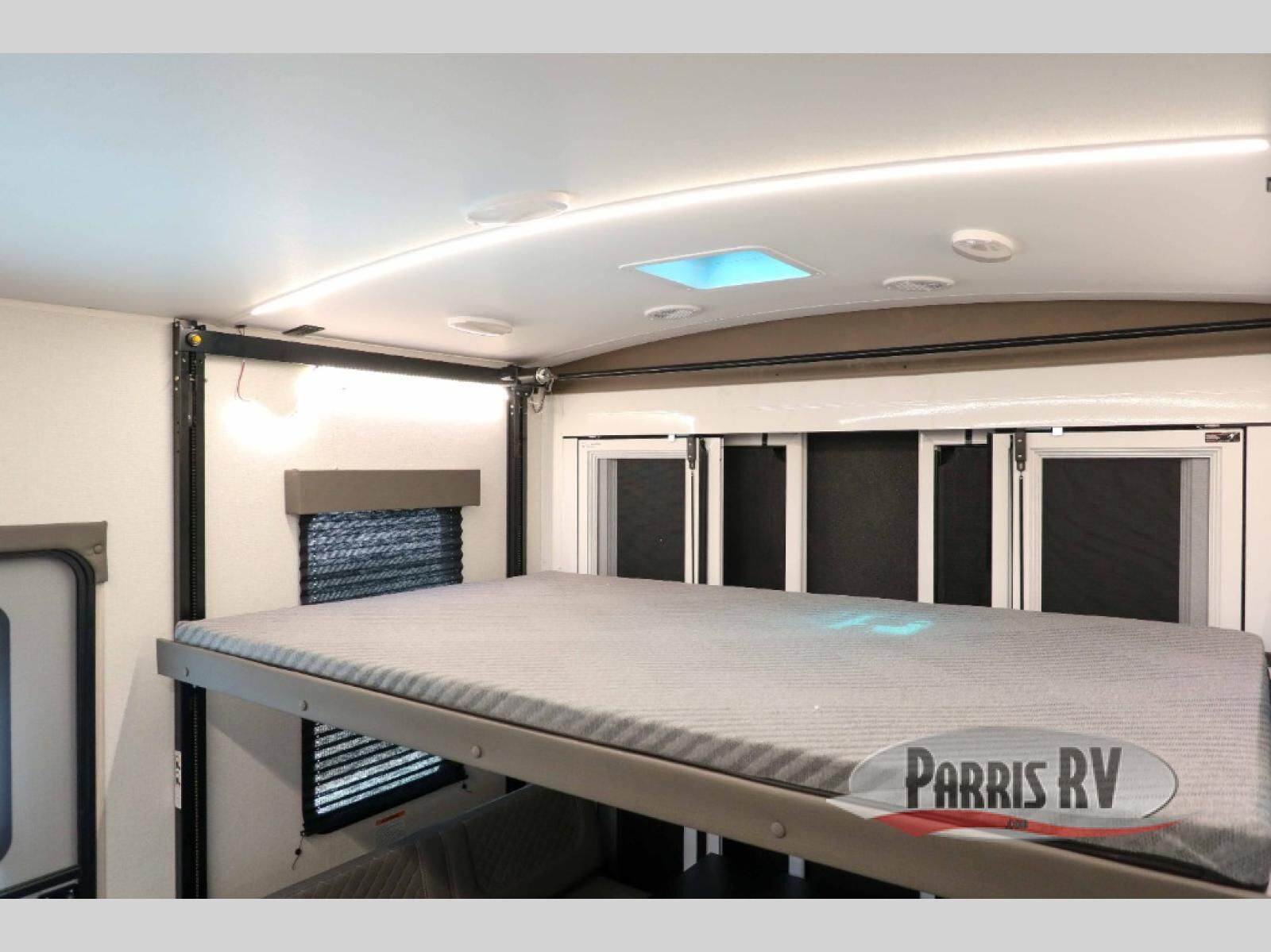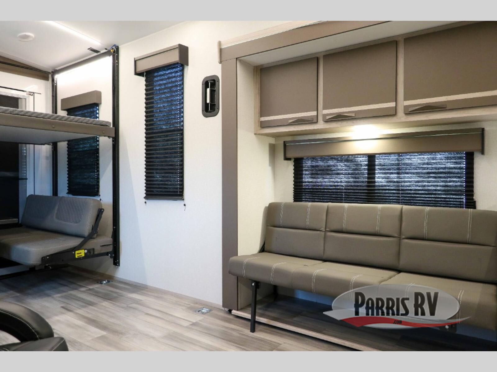 You can't go wrong with this dual entry toy hauler in tow! Once you arrive at the campground, fill up the bikes using the convenient 30 gallon fuel station, then head out on a trail or two! There is a dual entry bath on board that will allow you to clean up before heading to the kitchen to start dinner. You will love the large slide out that will provide more space when cooking, and there is a sofa with a table to dine at. You may just want to kick back on the dual lounge chairs before starting the dishes. Sleeping space can be found on the king bed in the front bedroom, or on the opposing sofas and power queen bed in the garage!