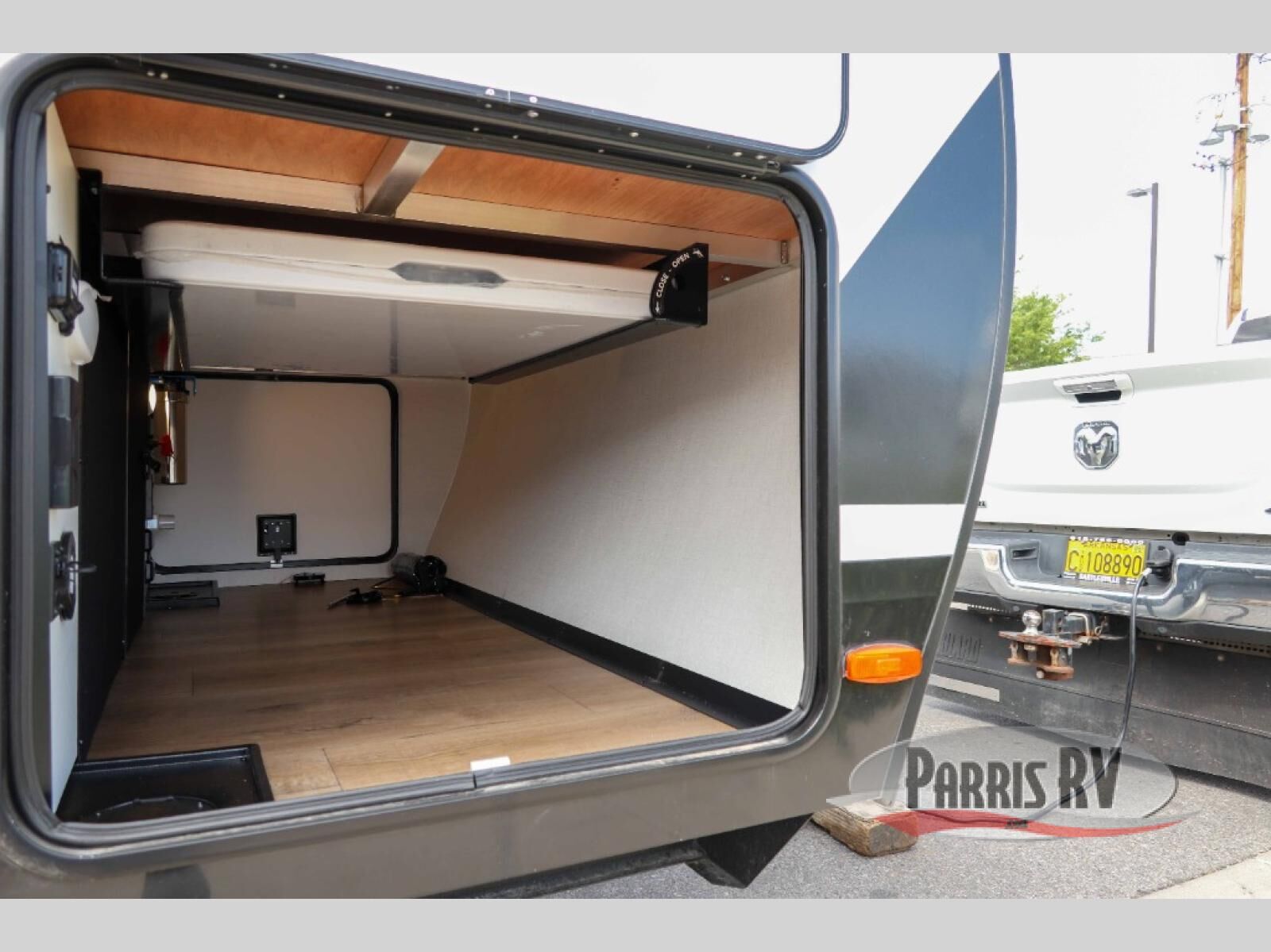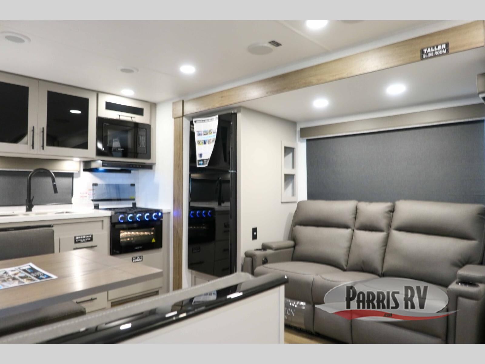 Head to your favorite camping spot in this double slide out travel trailer! You can set up the 19' awning when you arrive, then start lunch on the exterior griddle. There is also an exterior refrigerator for cold drinks! If the weather isn't cooperating, the rear kitchen includes generous counter space to prep meals and all the appliances needed. A booth dinette inside provides a place to dine together, or you can choose the optional table and chairs if you prefer that seating arrangement. You're sure to enjoy the theater seat in direct view of the 40" TV for movie nights, and when you're ready to call it a night, the queen bed in the front bedroom will provide a great night's rest.