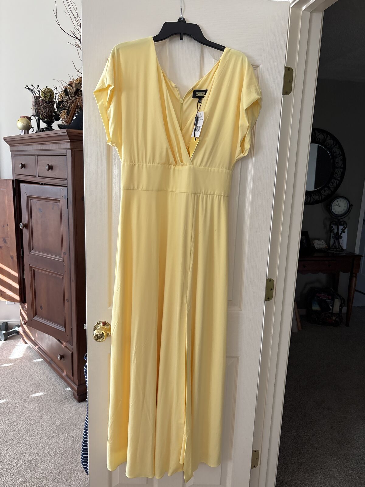 VenmoSmoke free home. Size: large. My daughter was in three weddings, and many dresses were bought and never returned! This dress is an Alexia Admor with a slit on left side. Great quality.