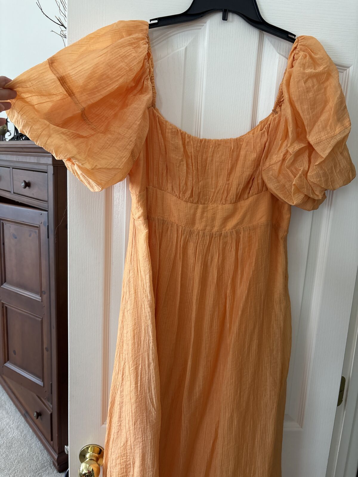 Smoke free home. Size: 14 My daughter was in three weddings, and many dress were bought and this is a Showpo. with a square back. puff sleeves and scrunched bust. Great quality.
