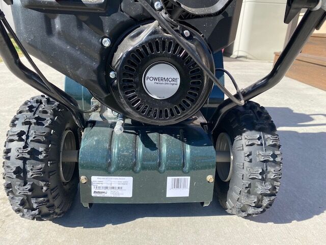 Compact Powermore two-stage snow blower is capable of handling light to moderate snowfalls up to 12-in deep and clearing driveways, sidewalks, and patios.