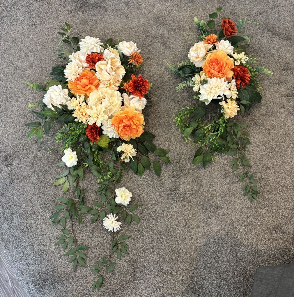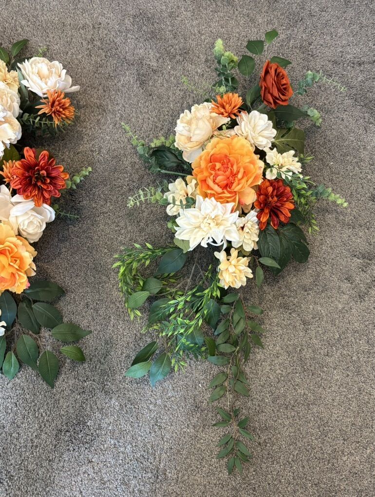 VenmoOrange cream terra cotta. Large piece is 48” long and the smaller piece is is 39” long. Artificial flowers and greenery. This piece is newly created an addition color.