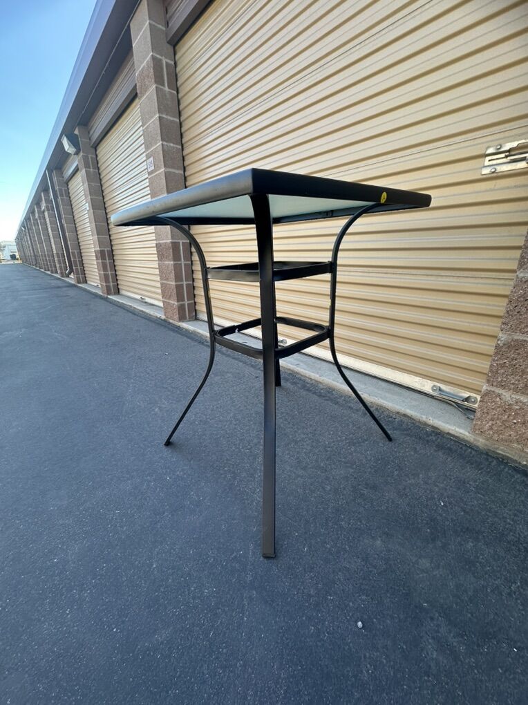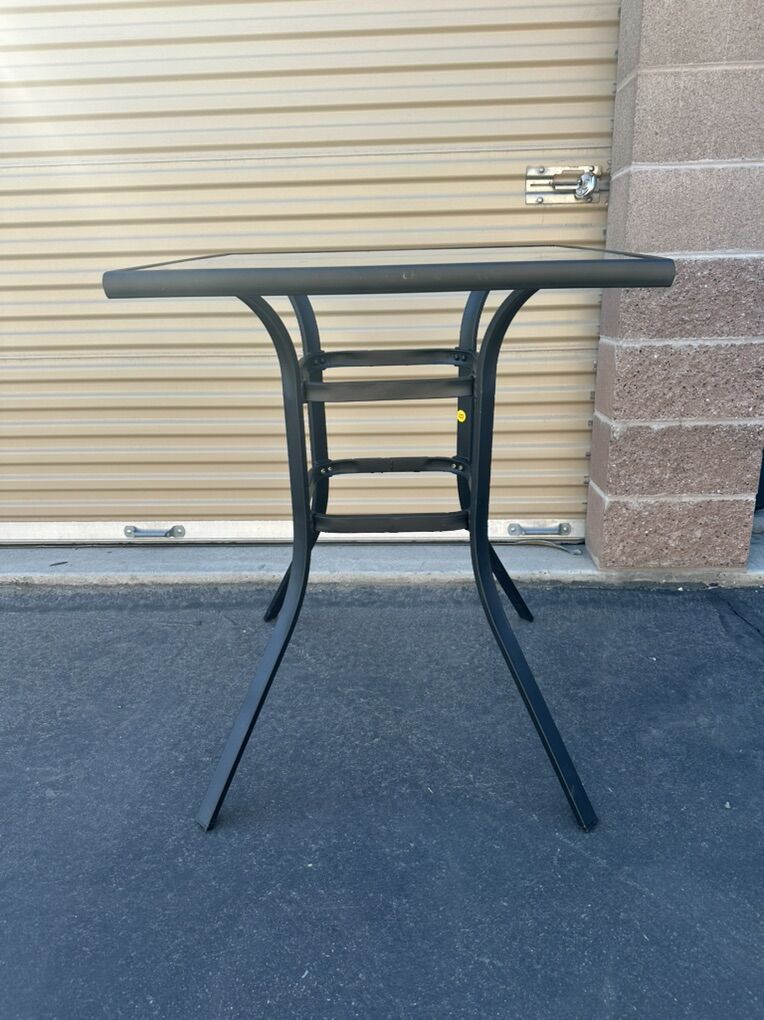 ApplePayThis is a bar height bistro table from Mainstays. It does not com e with chairs it is just the table. It is made out of Steel.