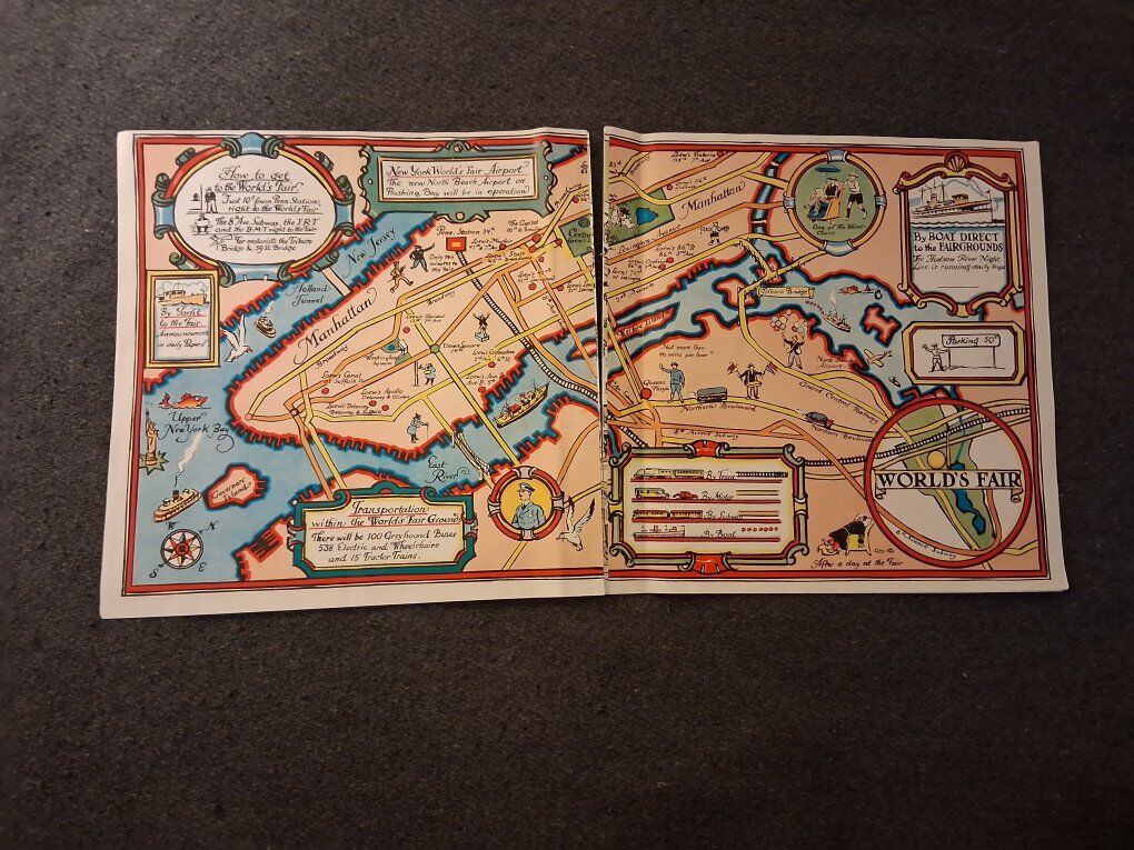 Genuine 1939 Map of New York Worlds Fair.Only asking $20 because of two small flaws.One on the back cover where there are a couple of small scrapes and then the seam of the map has separated but with no damage to the book.