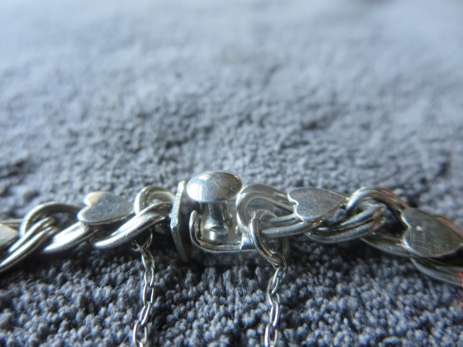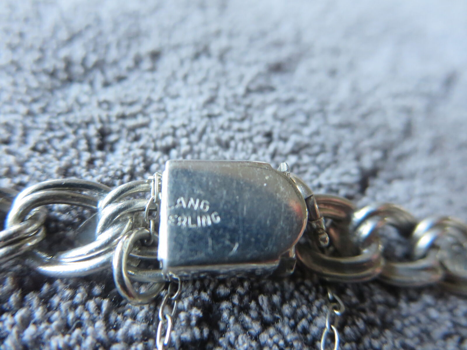 I have a. Vintage 1960's Lang Sterling Heart Double Link Charm Bracelet Signed. For sale call or text only thanks for looking D.