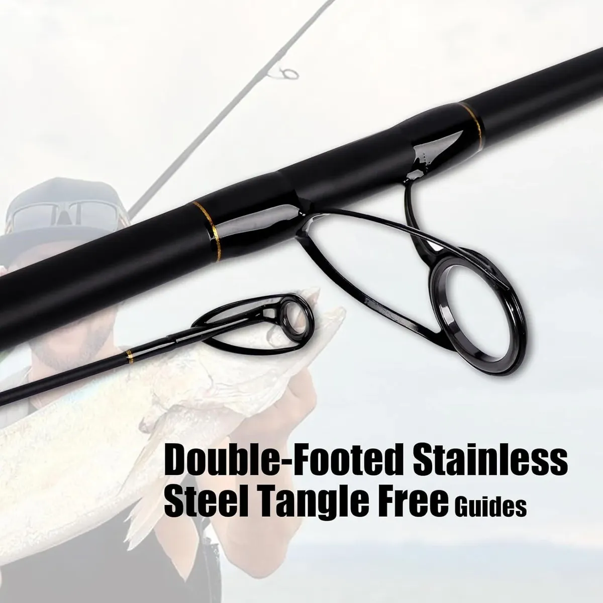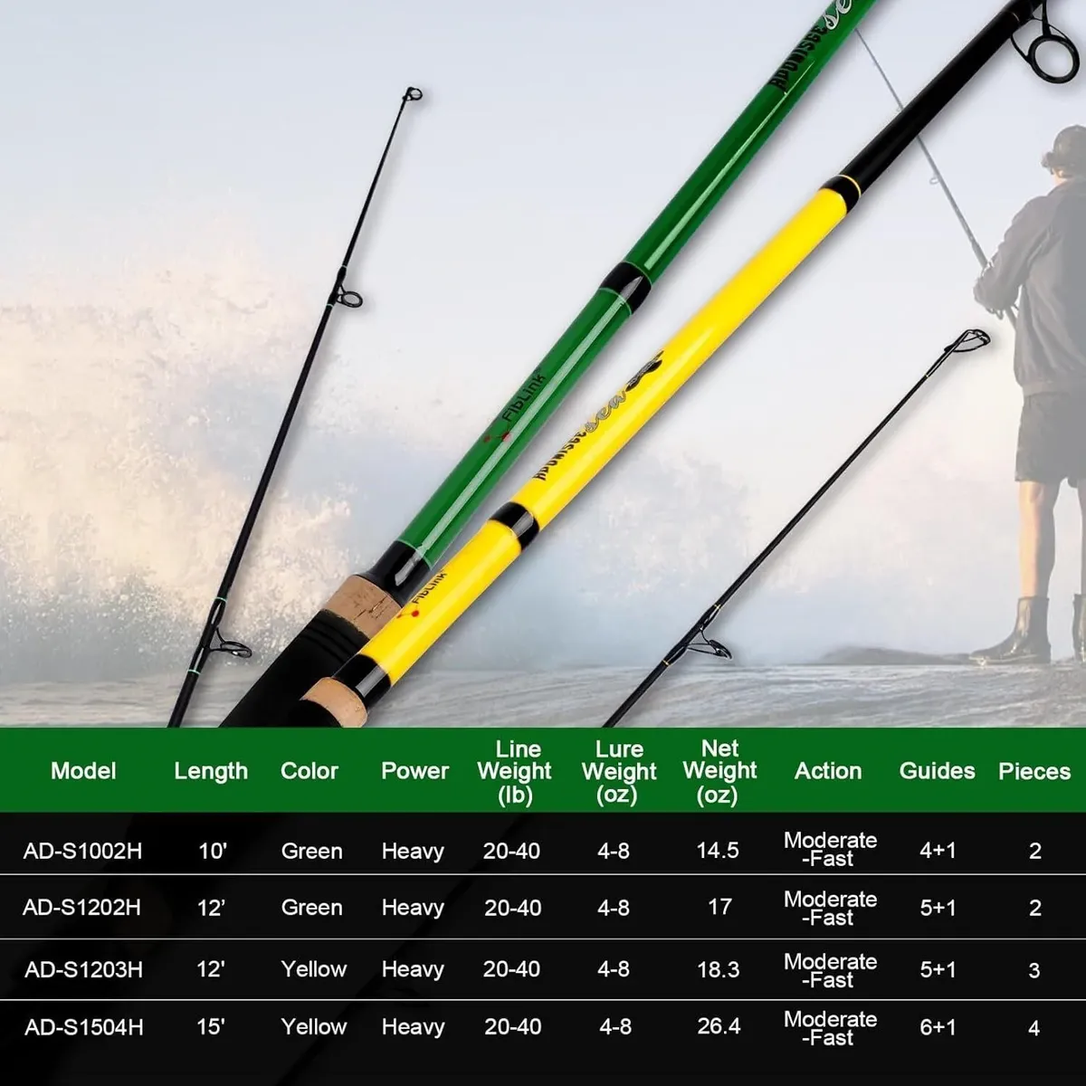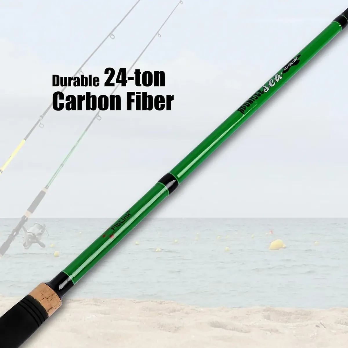 Carbon Fiber Blanks: 24-Ton carbon reinforcing technologies, increasing strength and impact protection; high-pressure production techniques, yield powerful high-fiber density carbon blanks with no excess weight Aluminum Alloy Reel Seat: Aluminum alloy wheel seat with tapered hood transitions above and below reel seat protecting cap; durable and sturdy, with strong load-bearing capacity, it can easily handle large fishes Cork Handle: Ultra-sensitive, and super comfortable, the rods feature a cork handle adept at capturing the subtlest bites; the beauty and comfort of cork has been used in the great fishing rods for decades Tangle Free Guides: Stainless steel mixed with ceramic guide makes it more smooth, avoids line stucking in the guides, and minimizing friction in smooth and long castings; the double footed guides designed to perform with all fishing lines Usage: These surf rods are suitable for targeting striped bass, red drum, bluefish, and false albacore; Fiblink Surf rods provide strength, performance and style, the entire surfcasting scene will take notice; it delivers superior level technology and construction that will hold up when surf fishing.