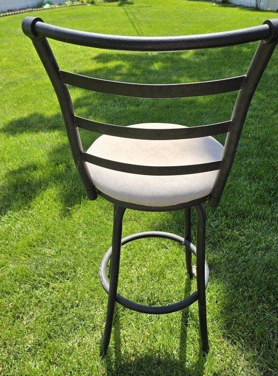 Mainstays Indoor Adjustable 24" or 29" Swivel Barstool, Gray Microfiber Cushion. uesd very good condition.