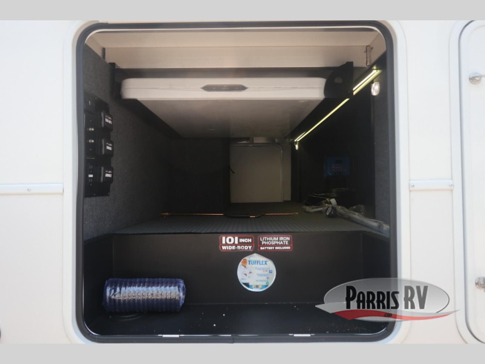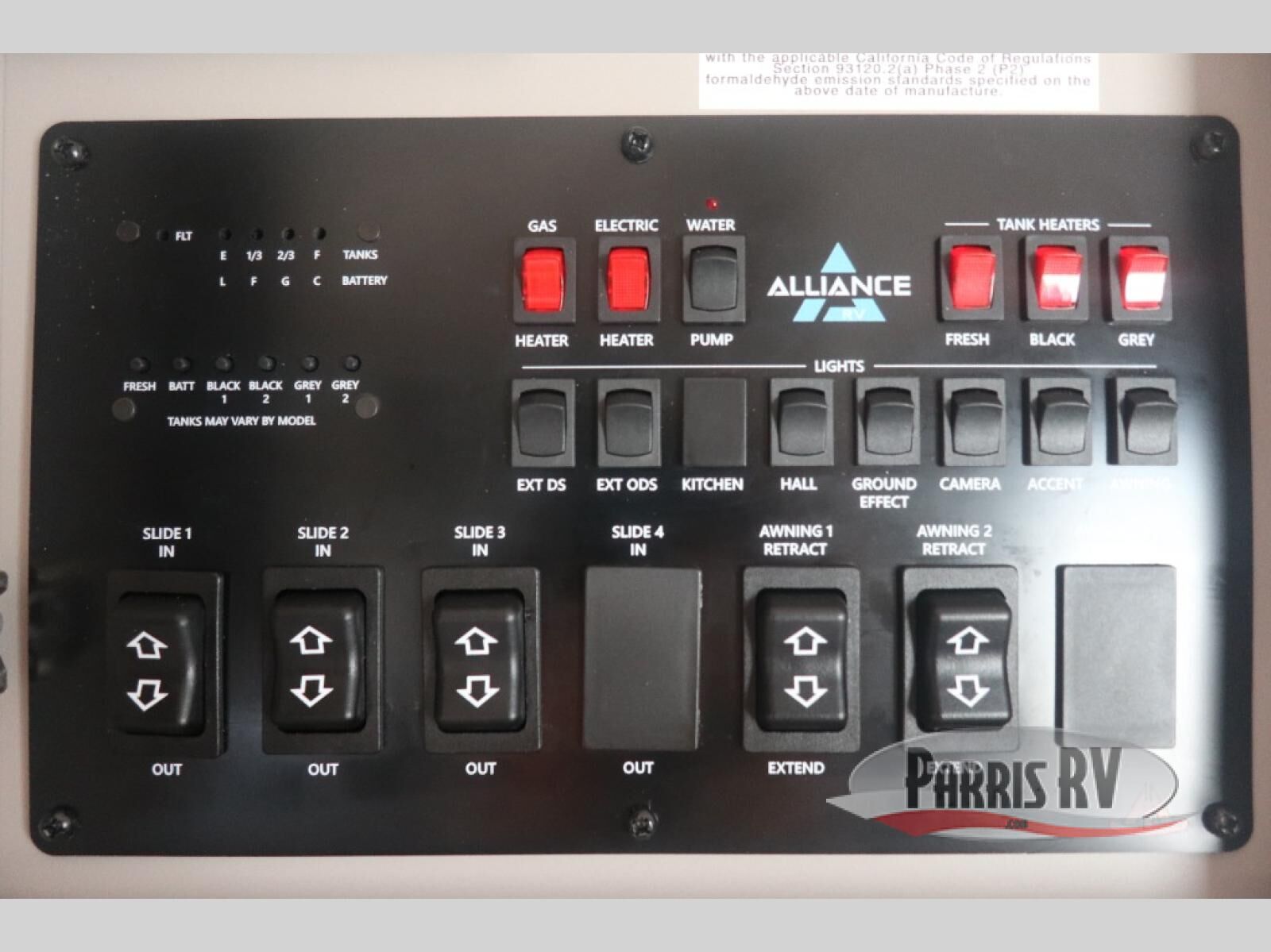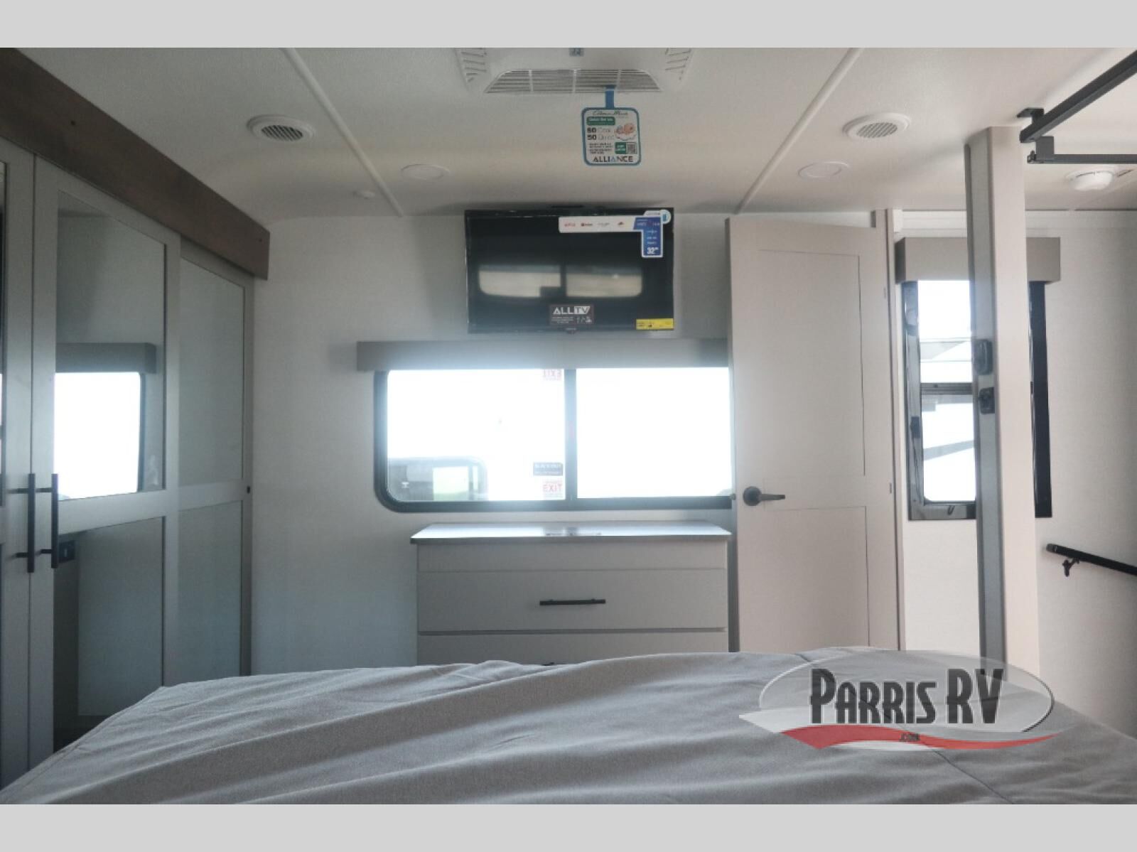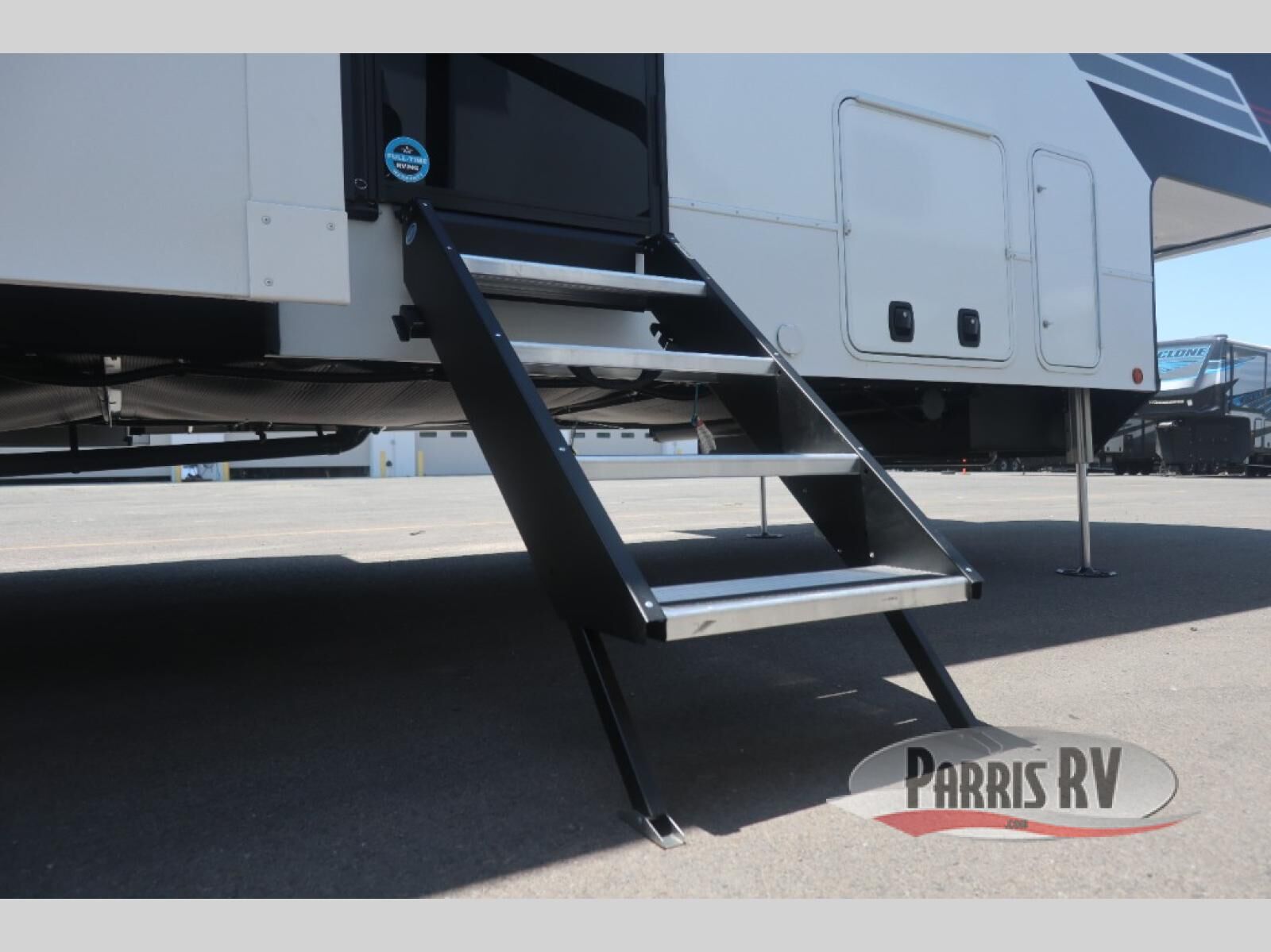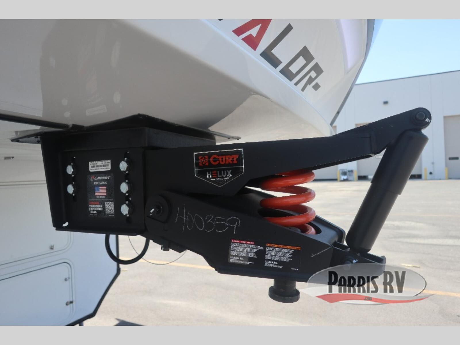 You can bring your toys with you wherever you go with any one of these Alliance RV Valor toy hauler fifth wheels! They are adventure-ready with a quality build from the walk on roof with seamless PVC roof covering to the commercial grade vinyl flooring and MorRyde CRE3000 suspension system. The Performance Running Gear package comes with a 101" wide-body benchmark chassis platform, 7,000 lb. Dexter axles, and a space enhancing drop frame storage compartment to pack in all your riding gear. You can even go off-gridding thanks to the Off the Grid Pack that has two 400 watt solar panels, generator prep, a 40 amp charge controller, and a 100 amp hour lithium iron phosphate battery. Some of the interior comforts you will enjoy are the hardwood cabinet doors and drawers, solid surface kitchen countertops, and commercial grade vinyl flooring with no carpet to make clean up a breeze. The Valor toy haulers are also the Masters of 12 Volt with USB charging station throughout, a stainless steel refrigerator, and more 12 volt features to make camping hassle-free!