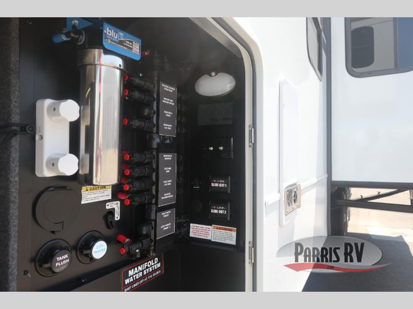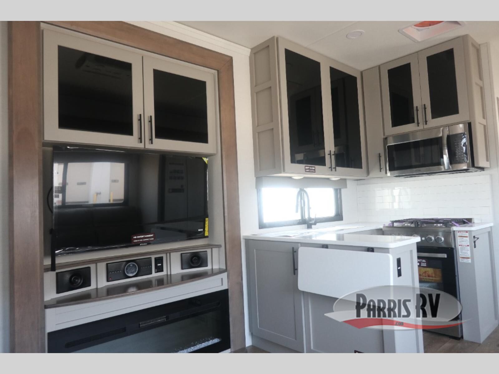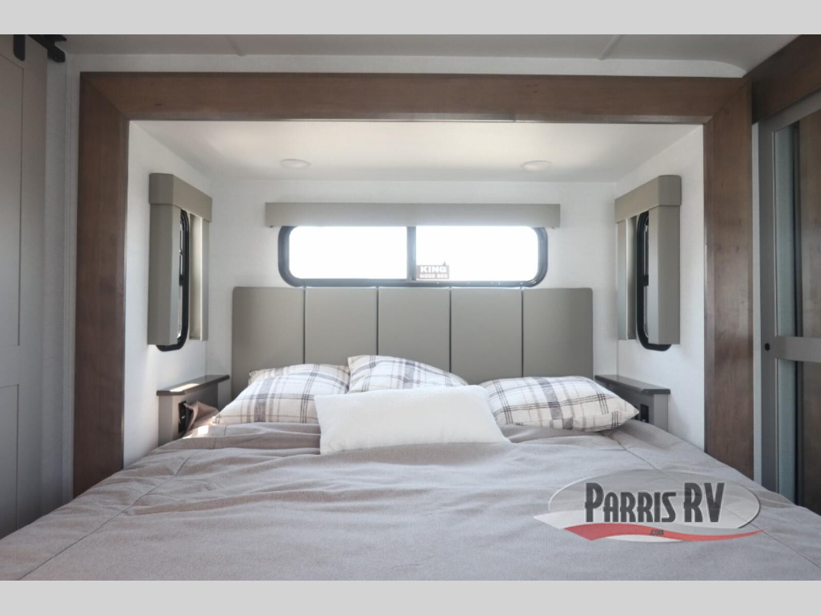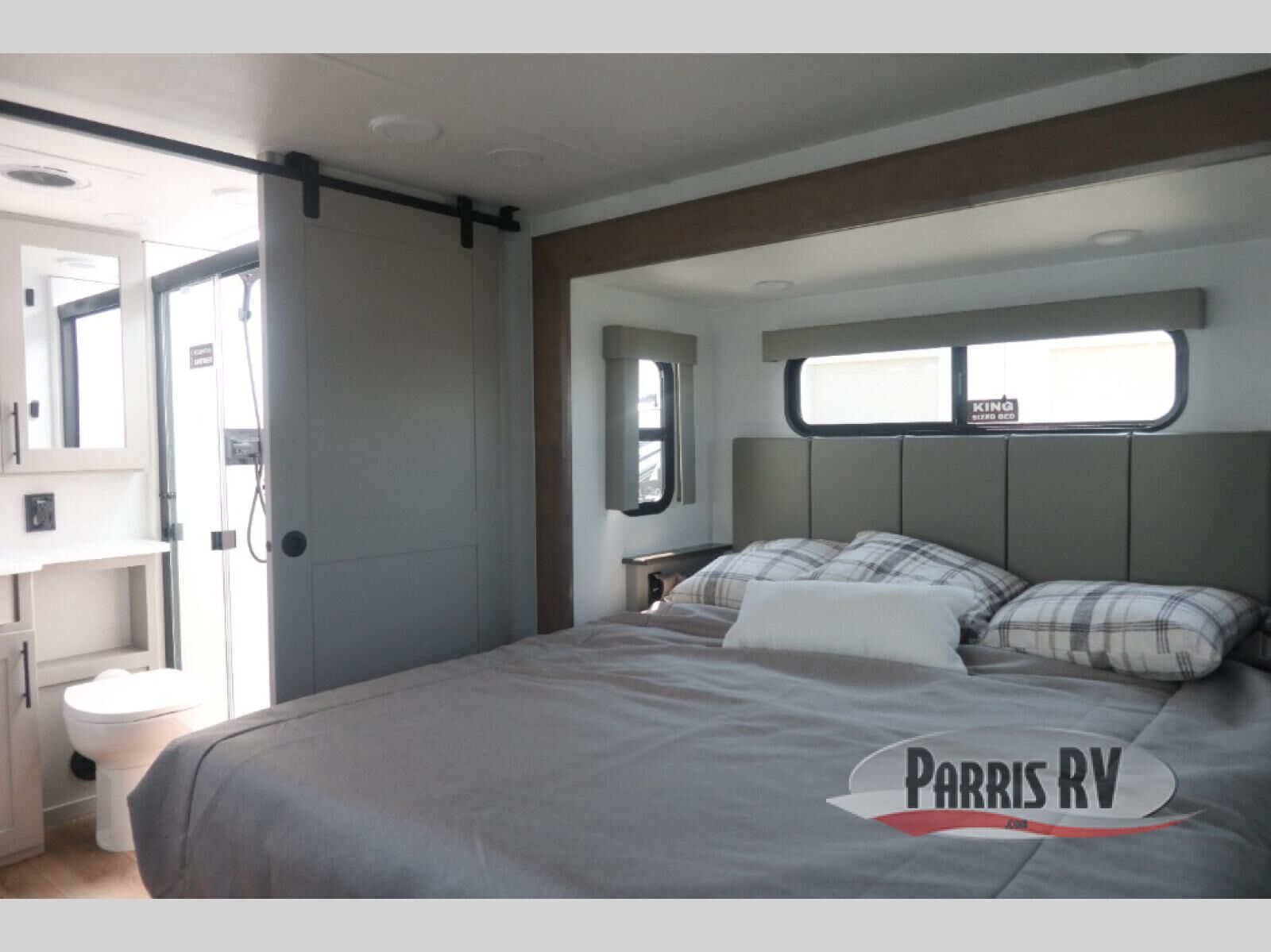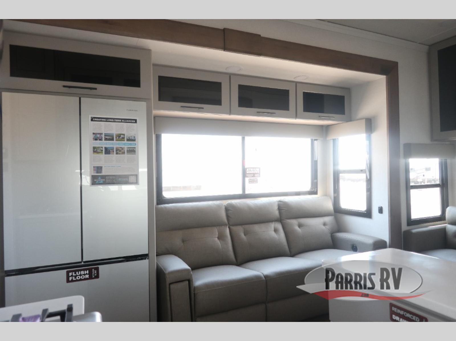 You can bring your toys with you wherever you go with any one of these Alliance RV Valor toy hauler fifth wheels! They are adventure-ready with a quality build from the walk on roof with seamless PVC roof covering to the commercial grade vinyl flooring and MorRyde CRE3000 suspension system. The Performance Running Gear package comes with a 101" wide-body benchmark chassis platform, 7,000 lb. Dexter axles, and a space enhancing drop frame storage compartment to pack in all your riding gear. You can even go off-gridding thanks to the Off the Grid Pack that has two 400 watt solar panels, generator prep, a 40 amp charge controller, and a 100 amp hour lithium iron phosphate battery. Some of the interior comforts you will enjoy are the hardwood cabinet doors and drawers, solid surface kitchen countertops, and commercial grade vinyl flooring with no carpet to make clean up a breeze. The Valor toy haulers are also the Masters of 12 Volt with USB charging station throughout, a stainless steel refrigerator, and more 12 volt features to make camping hassle-free!