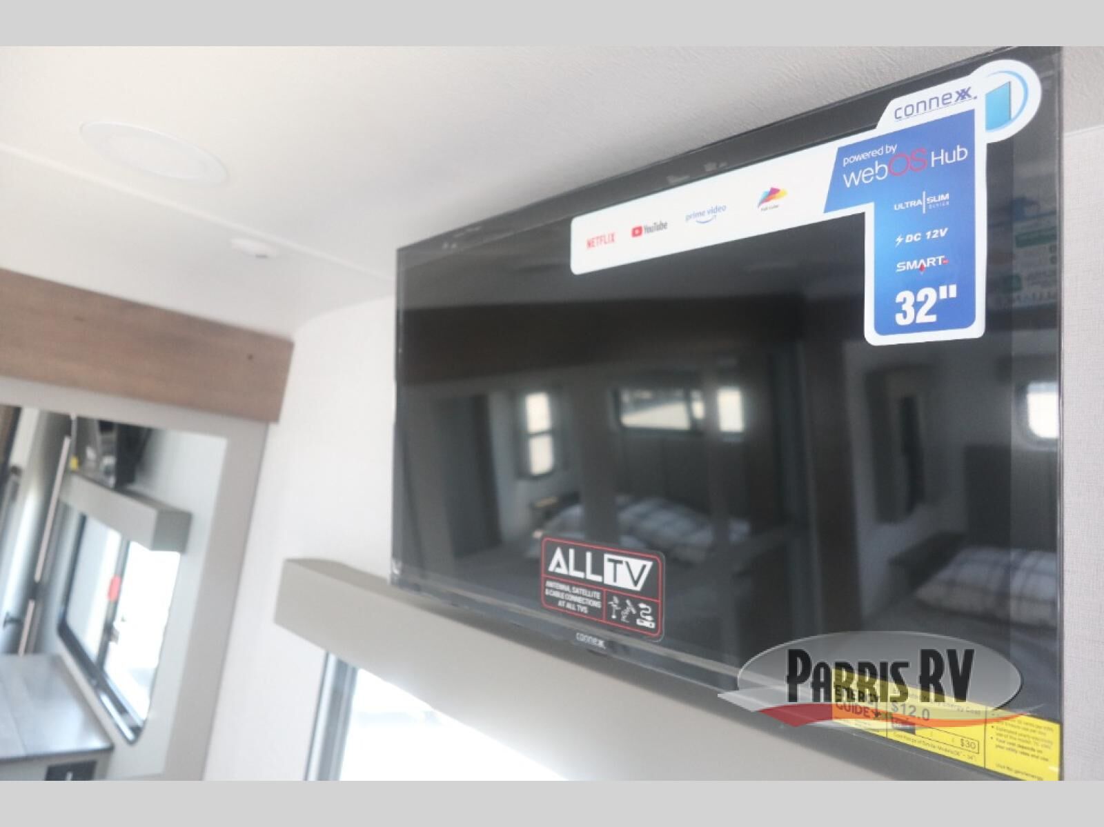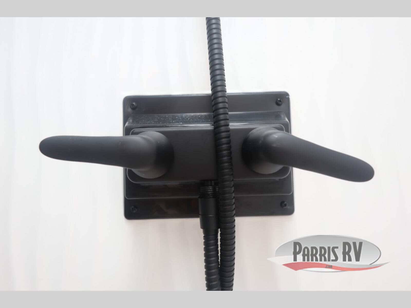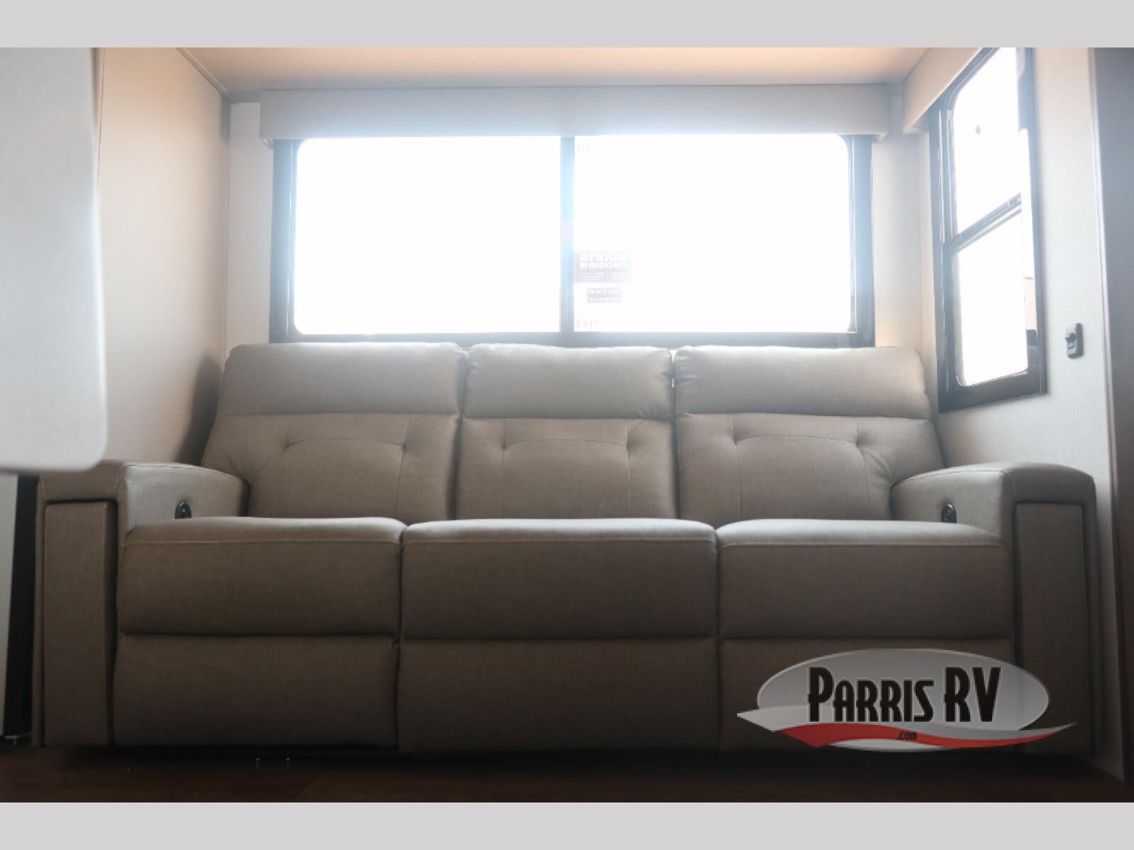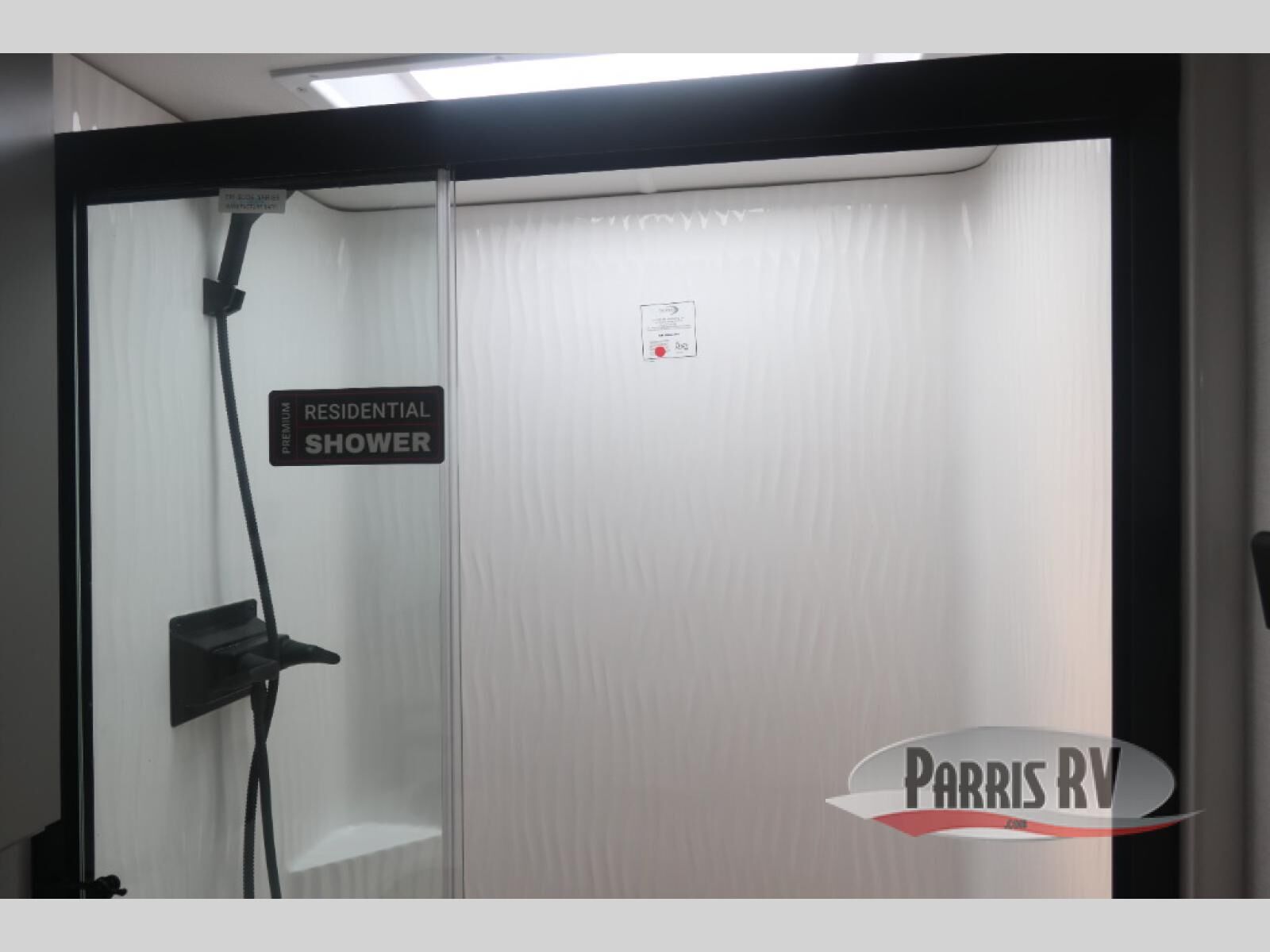 There is room for your off-road toys and the whole family in this toy hauler! The bath and a half makes life more convenient and the dual entry doors create a smooth flow of traffic in and out of the unit. Aside from 13' of garage space and an entrance/exit door, there are also opposing HappiJac sofas with a queen bed above them, a loft that opens to the garage, and a half bathroom. The chef can prepare their best meals with the four burner cooktop while two others sit at the flip up counter with two bar stools. After a fun day on the trails, wash up in the full bathroom with the 48" x 30" shower, grab your pajamas from the front wardrobe or flip top dresser in the front private bedroom then relax on one of the two sofas by the fireplace and 50" HDTV!