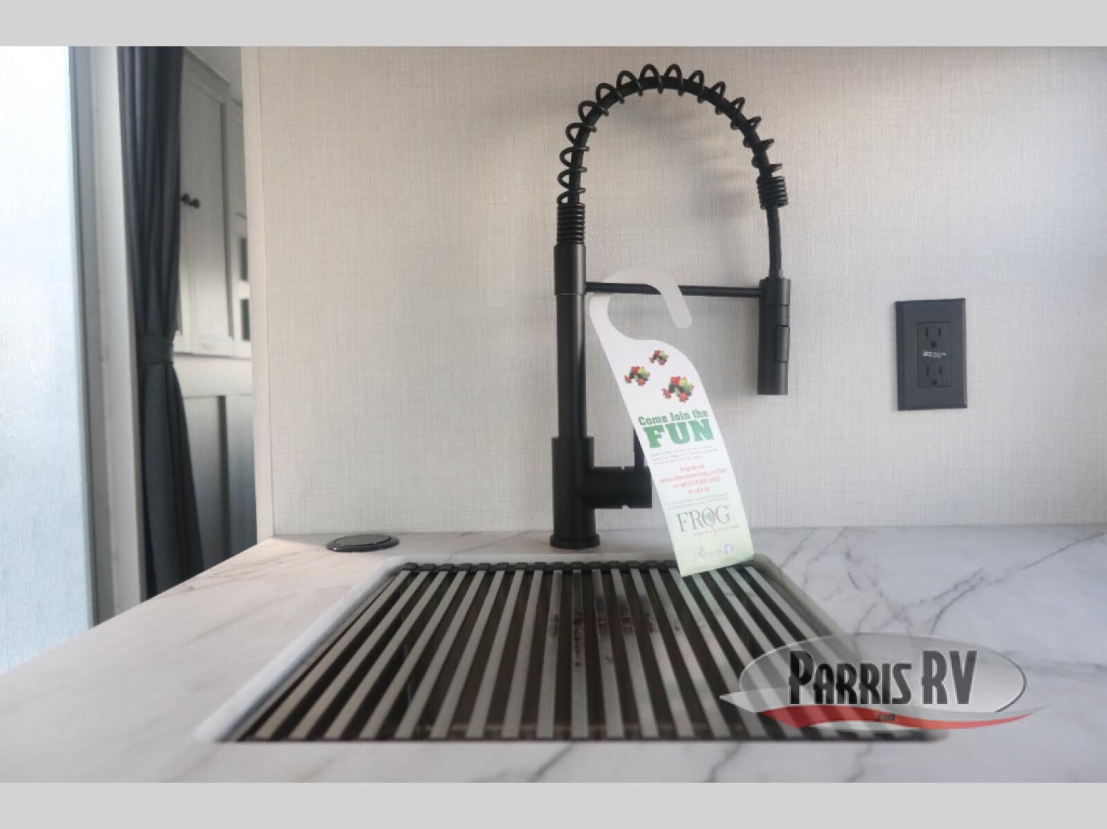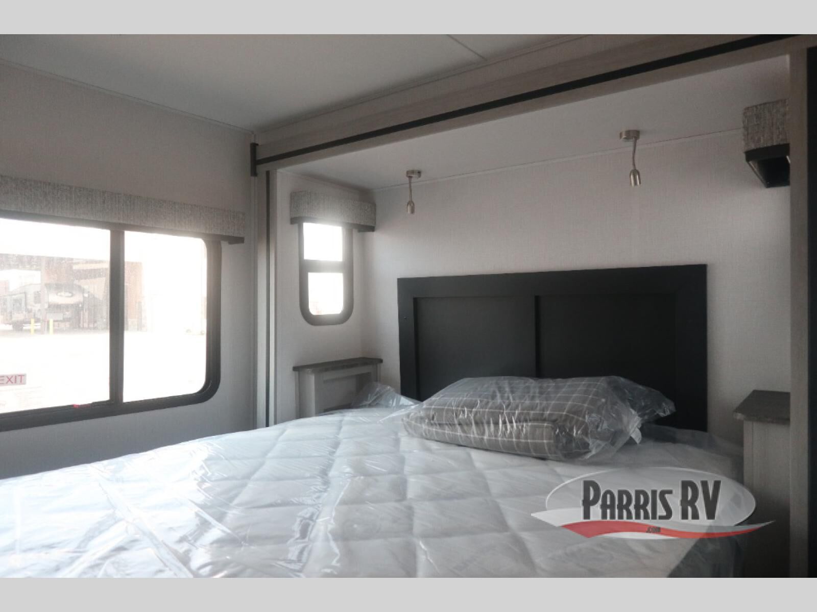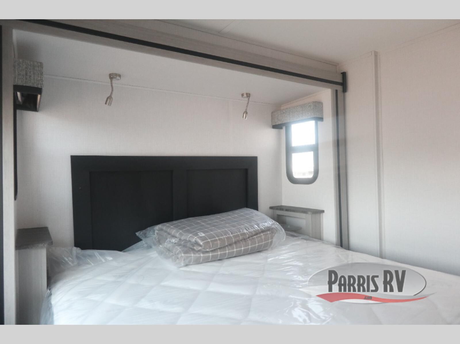 Pack your bags and pick your favorite destination then head out in this motorhome! The rear private bedroom has a 60" x 74" queen bed slide for more interior space, and a linen closet with wardrobes on either side of it. There is also a split-style bath with a private toilet and sink, and the shower is right across the hall. Prepare your best home cooked meals using the three burner cooktop, enjoy dining at the booth dinette, and store any leftovers in the 10.7 cu. ft. 12V refrigerator. You will also appreciate the outside kitchen with a refrigerator and cooktop plus an outside TV to watch the big game. Relax each evening on the sofa slide out, or you can replace it for the optional power theater seating. There is even a 60" x 80" bunk over the cab for extra sleeping or storage space!