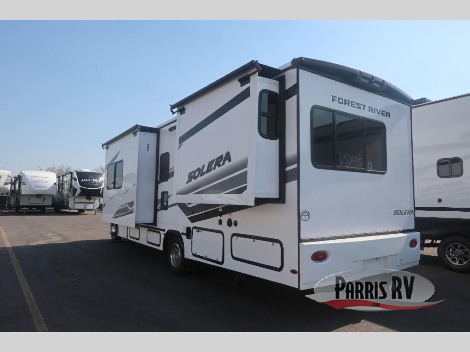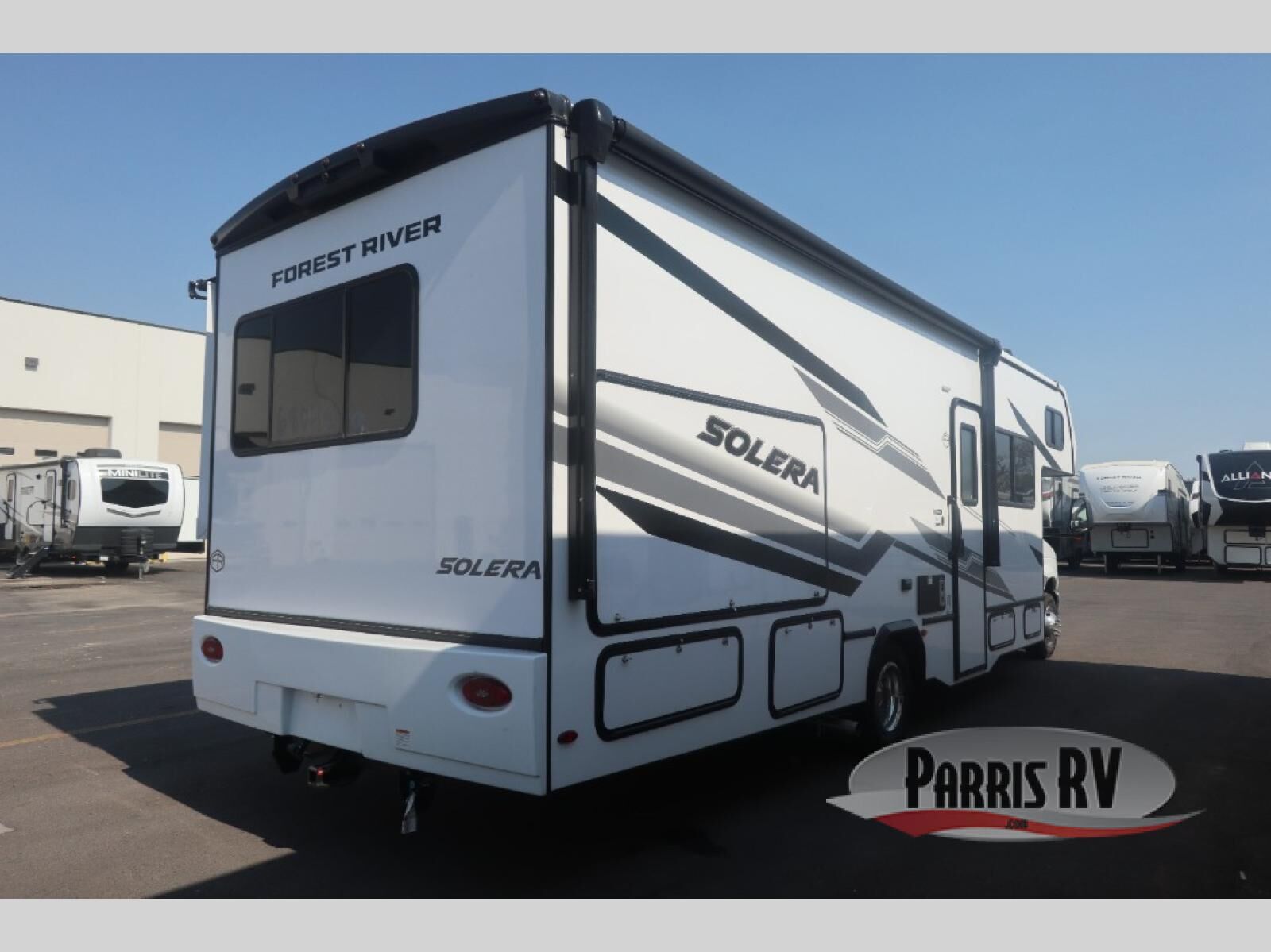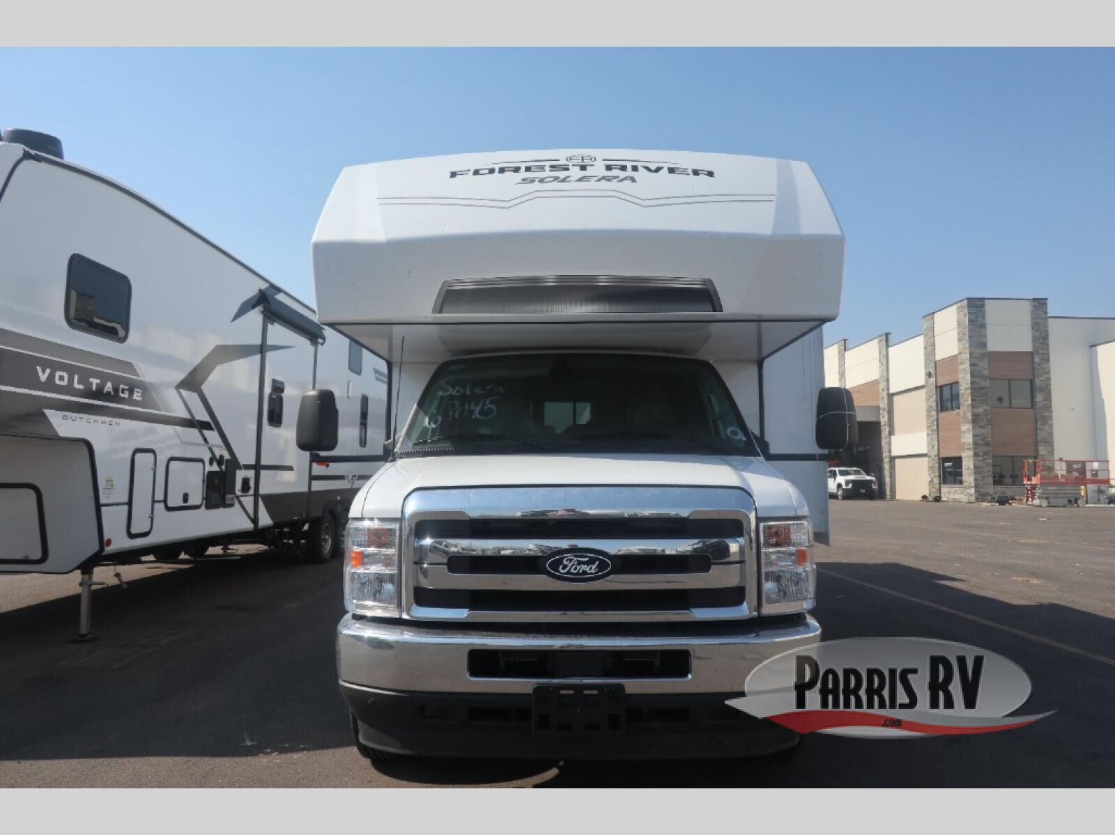 Each one of these Forest River Solera Class C gas and diesel motorhomes proclaim the style of a new generation! There is a convenient keyless entry, a backup and side view camera system, and a 10" in-dash touch screen Apple Carplay/Android Auto radio. The Ford E350/Chevy 3500, Ford E450 or Mercedes-Benz Sprinter 3500 chassis also help with the smooth ride. Each model includes aluminum framed laminated sidewalls, superlite composite substrate, and a gel coat exterior fiberglass for added durability. Inside, you will enjoy the MCD roller shades, residential style furniture with Fortress stain resistant fabrics, soft touch self-closing drawer guides, and many more comforts. And you can stay connected where ever you go with the Winegard Air 360+ antenna with Gateway 4G WiFi capability.