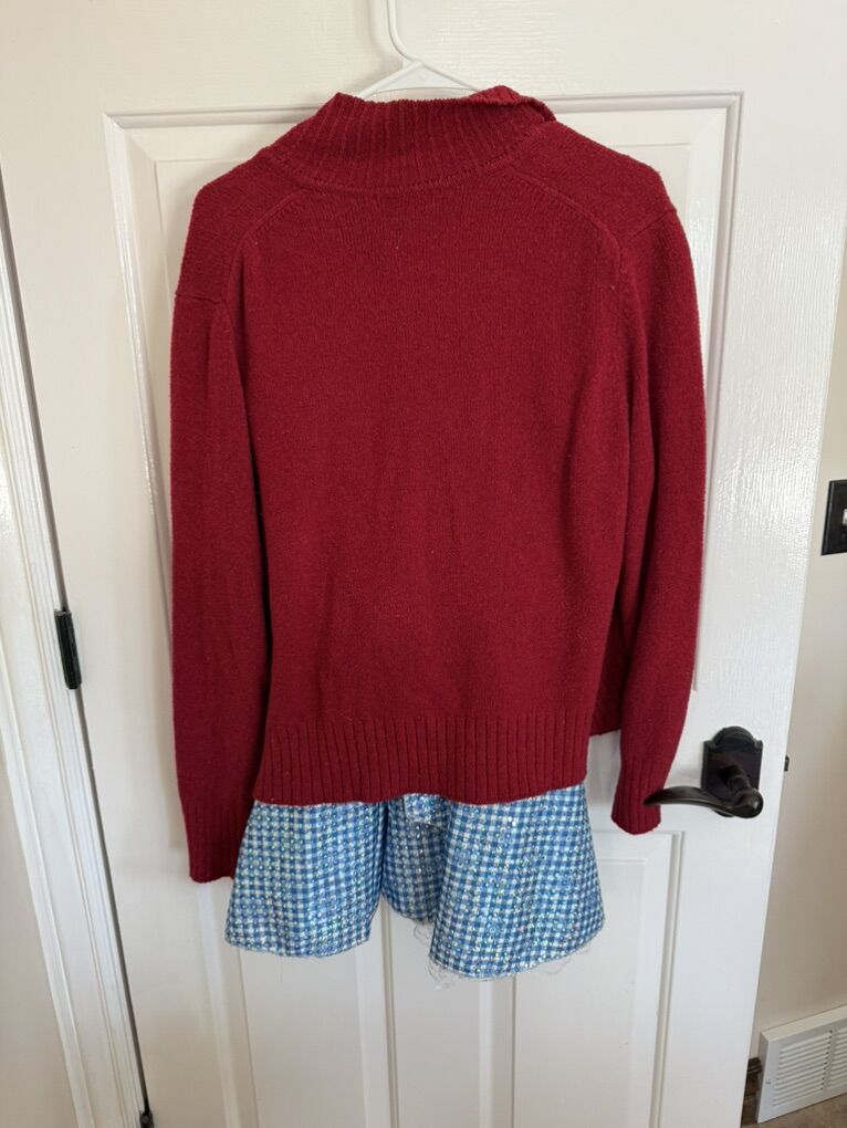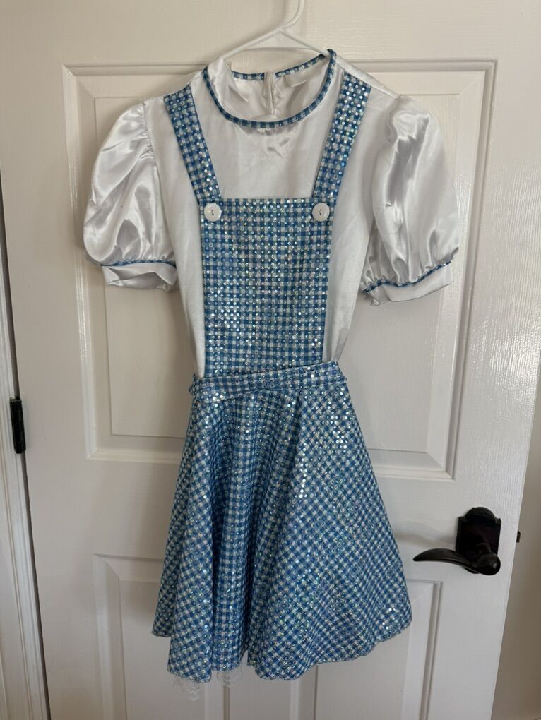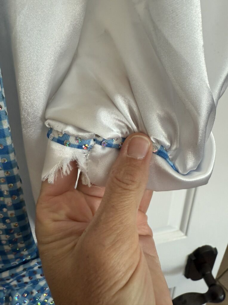 Costume wizard of Oz Dorothy dress size large sweater XL does have damage on inside cuffs.