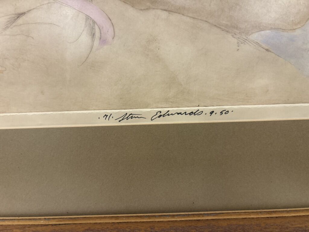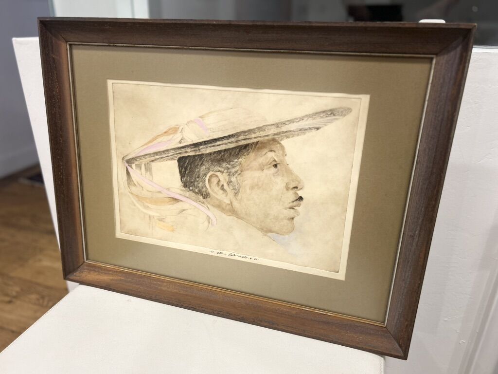 ZelleThe product is a signed limited edition print by artist Steve Edwards, produced in 1971 in Texas, USA. The medium-sized print features a portrait of a man with a hat, blending elements of Mexican, Realism, and Impressionism styles. The matted and framed artwork is a licensed reprint, part of a limited edition series of only 50 pieces. With intricate details and a landscape orientation, this piece of folk art captures the essence of the contemporary period in the United States.