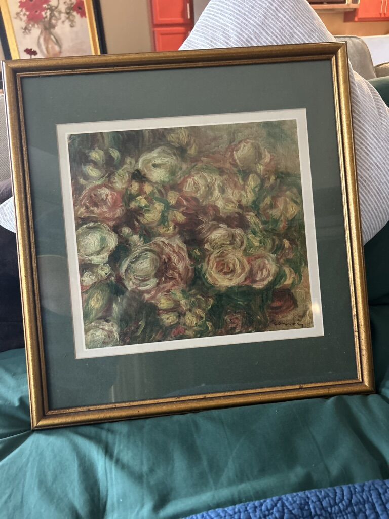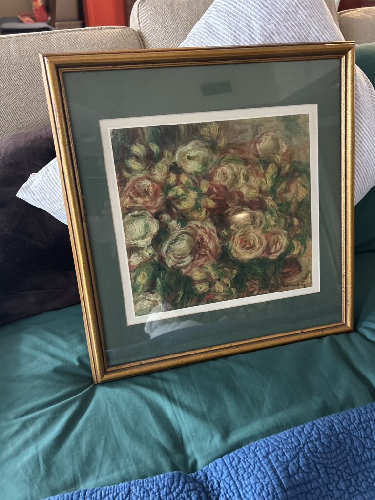 ZelleThis Renoir print features a portrait orientation with a small size, perfect for adding to a collection or displaying in a small space. The framed and matted piece is signed by Renoir, adding authenticity to the artwork. Made on paper using a giclée print technique, the piece captures the artist's style and themes of nature and floral elements, showcasing the influence of expressionism, realism, and impressionism. The detailed image of famous paintings/painters by Renoir brings a touch of beauty and elegance to any art enthusiast's home.