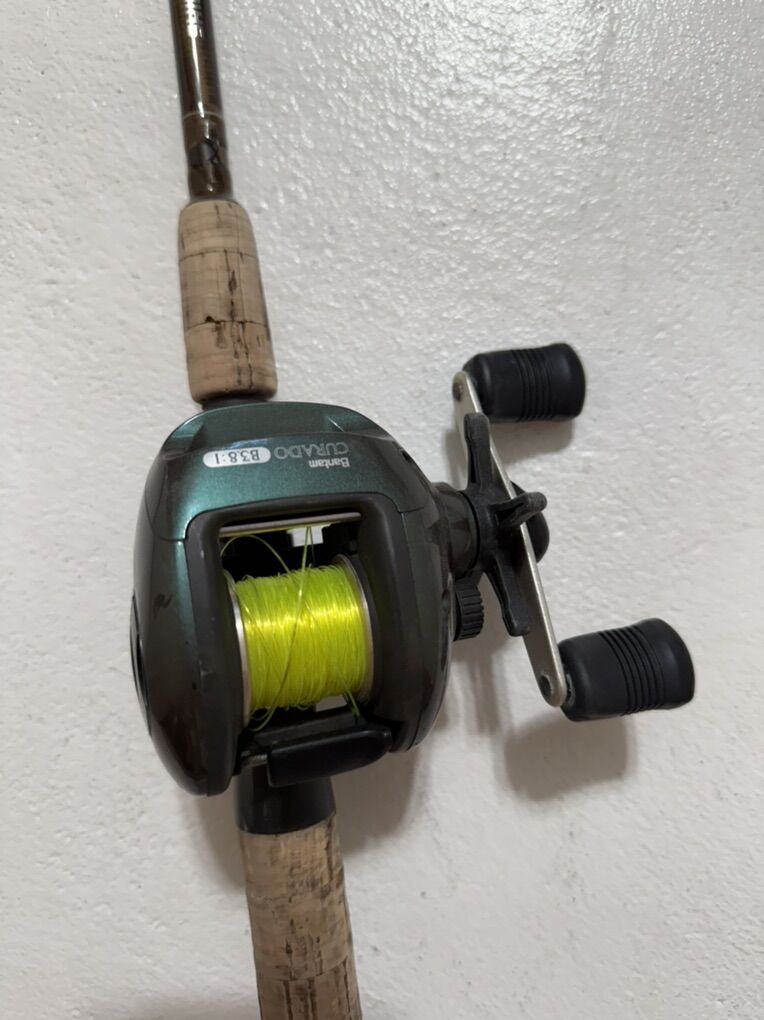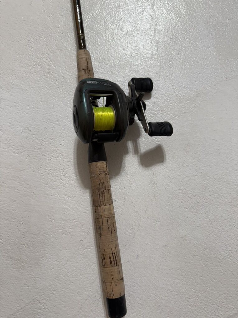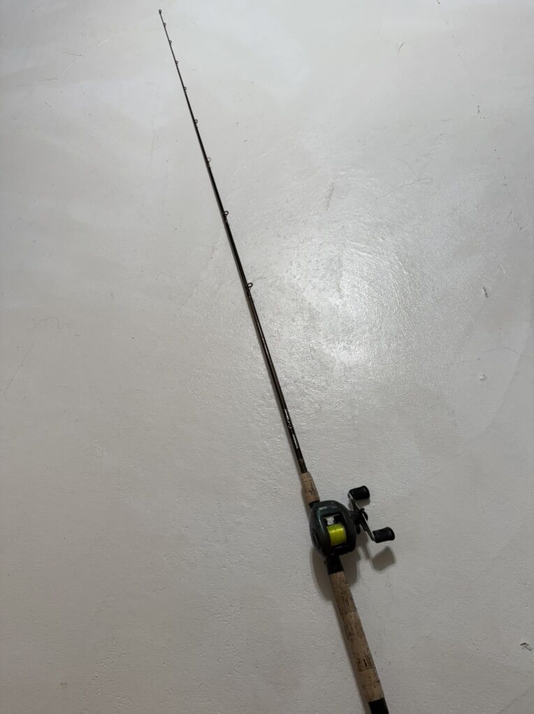 Shimano Clarus graphite rod shaman curator bait cast reel set Shimano Clarus graphite rod 6’ long Shimano curado bait cast reel set Line weight 10-25 pound Lure weight 3/8- 1 ounce