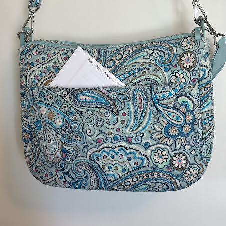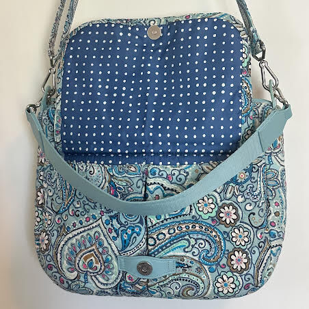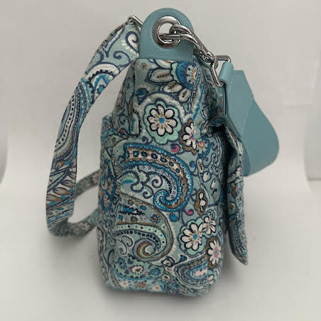 VenmoVera Bradley turquoise blue paisley quilted shoulder/handle bag. Measures 13” x 10”. Bottom width 4.5”. Front flap lined in blue/white polka dots. Snap magnetic closure uncovers two 6” deep pockets. Back 10” x 6” deep pocket has magnetic closure. Top zipper closure. Interior lined with silky blue/white polka dot fabric with two slot pockets and one large slot pocket. Two straps. One long adjustable fabric shoulder strap. One 1-3/4” wide solid blue fabric handle strap. Straps are removeable and adjustable. Excellent like new condition.