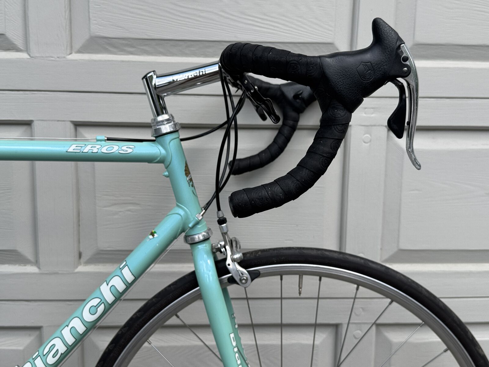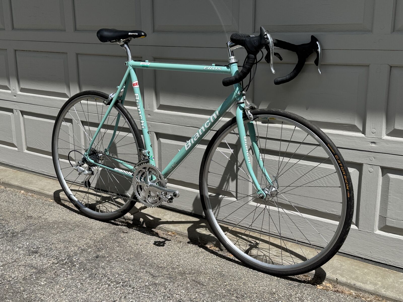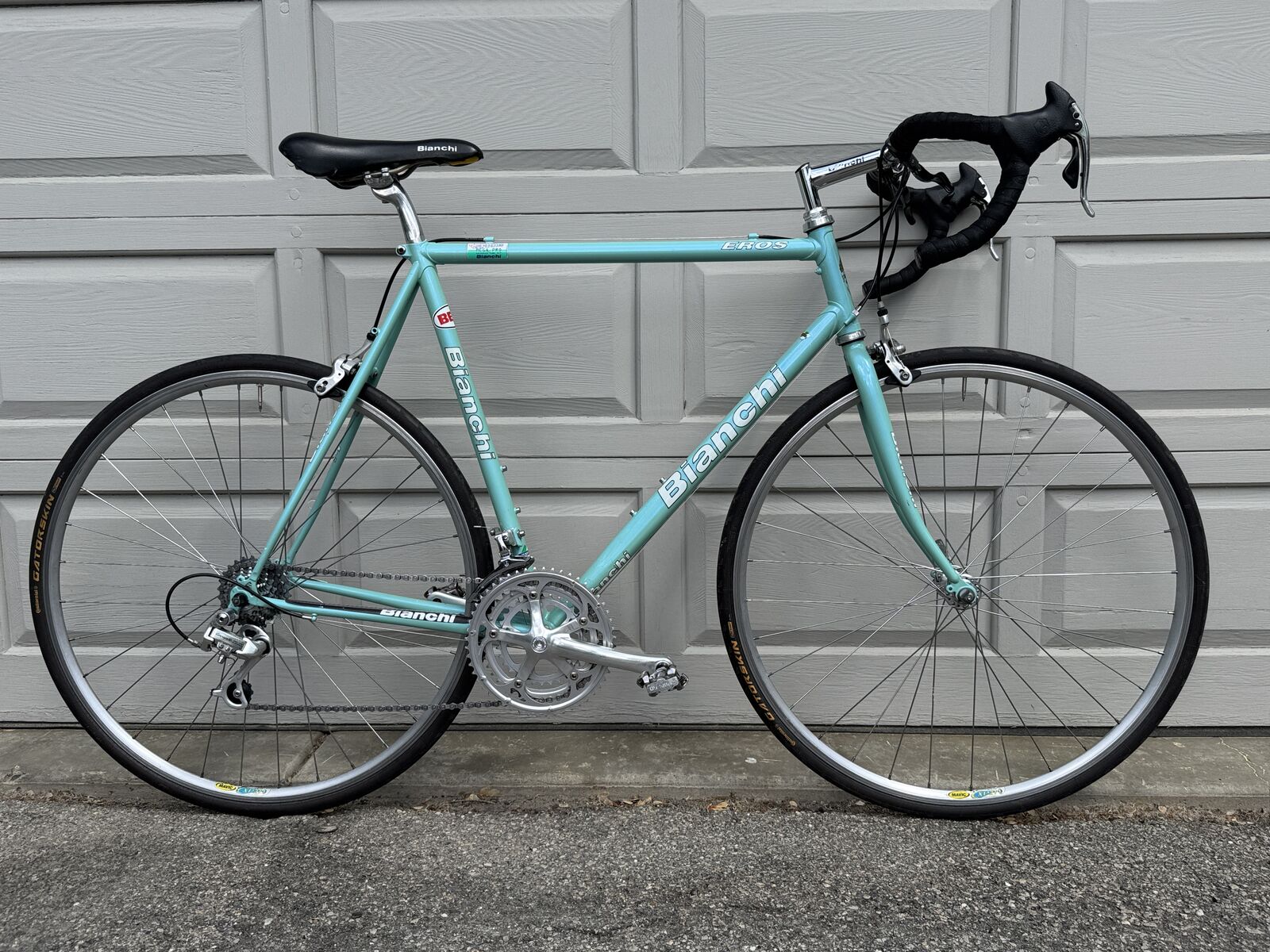 Italian made Bianchi Eros 56 in classic celeste blue with all Campagnolo component. This is a steel frame Italian bike with Italian components, made to last a lifetime.