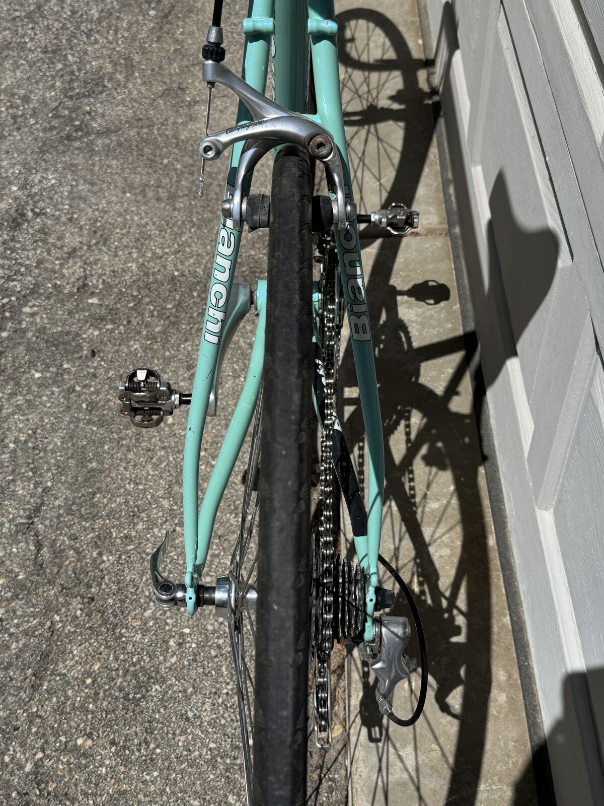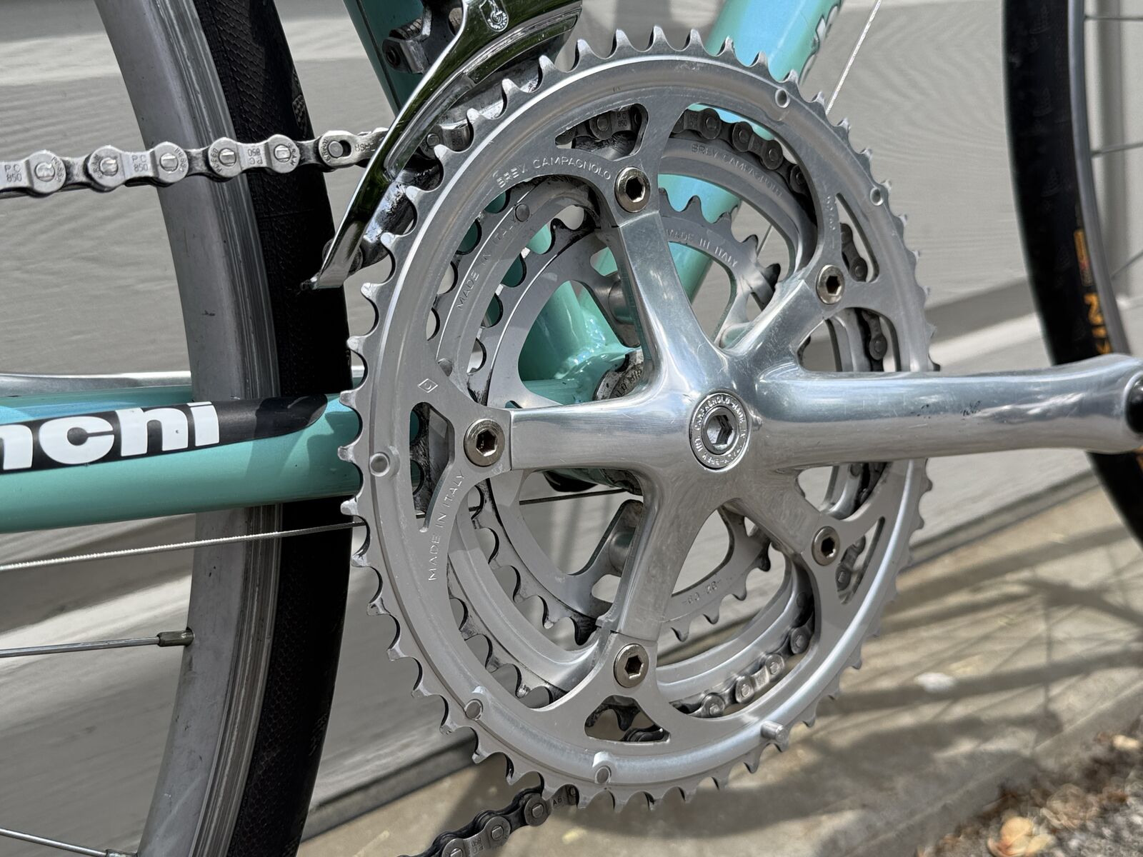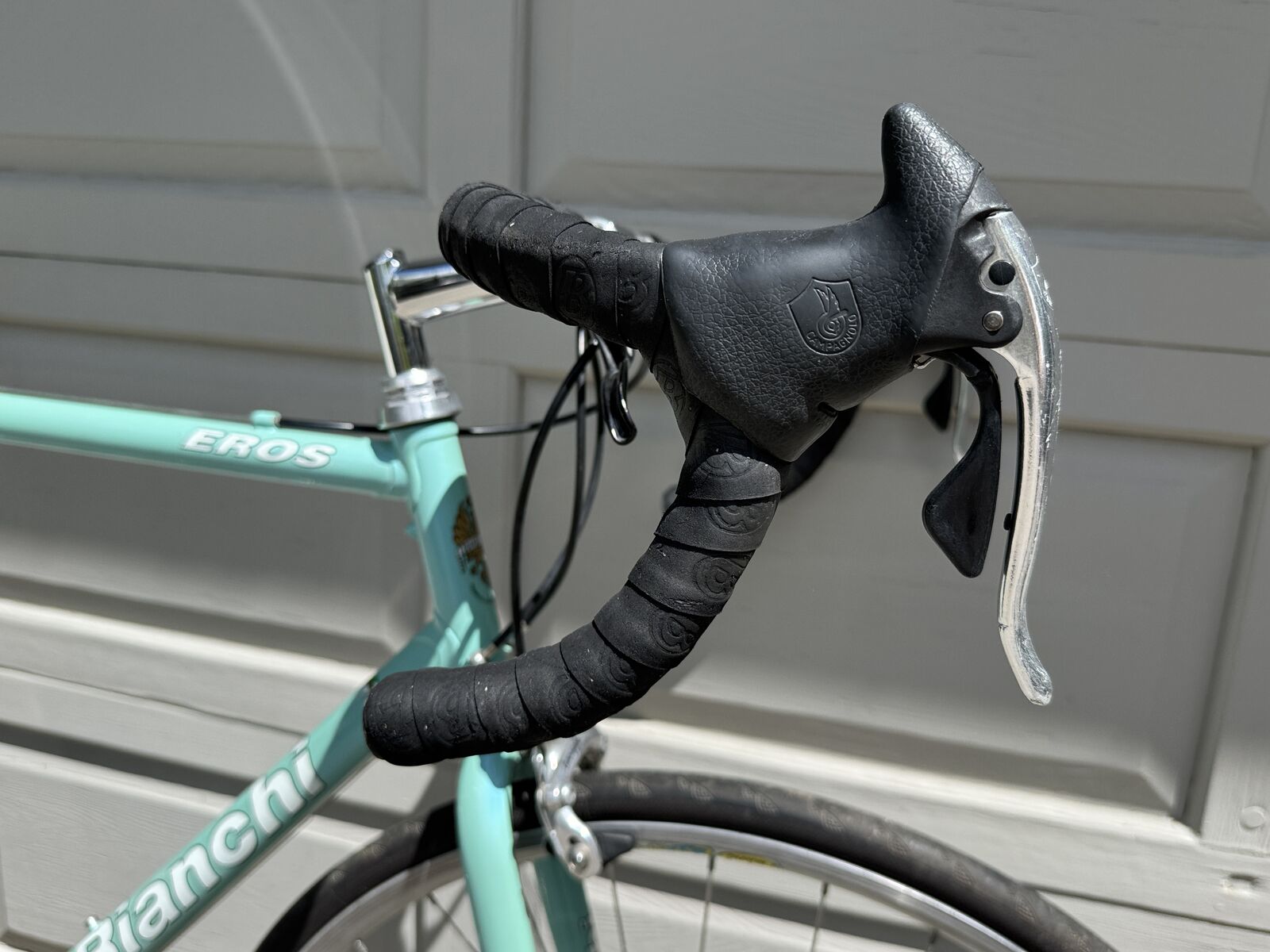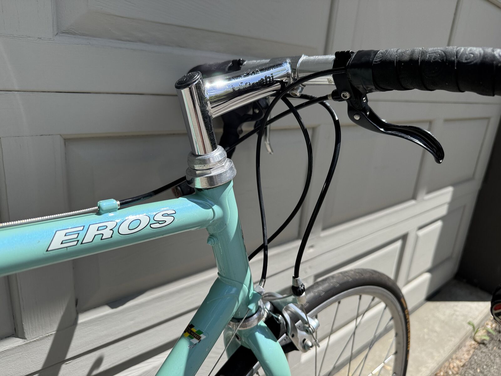 Italian made Bianchi Eros 56 in classic celeste blue with all Campagnolo component. This is a steel frame Italian bike with Italian components, made to last a lifetime.