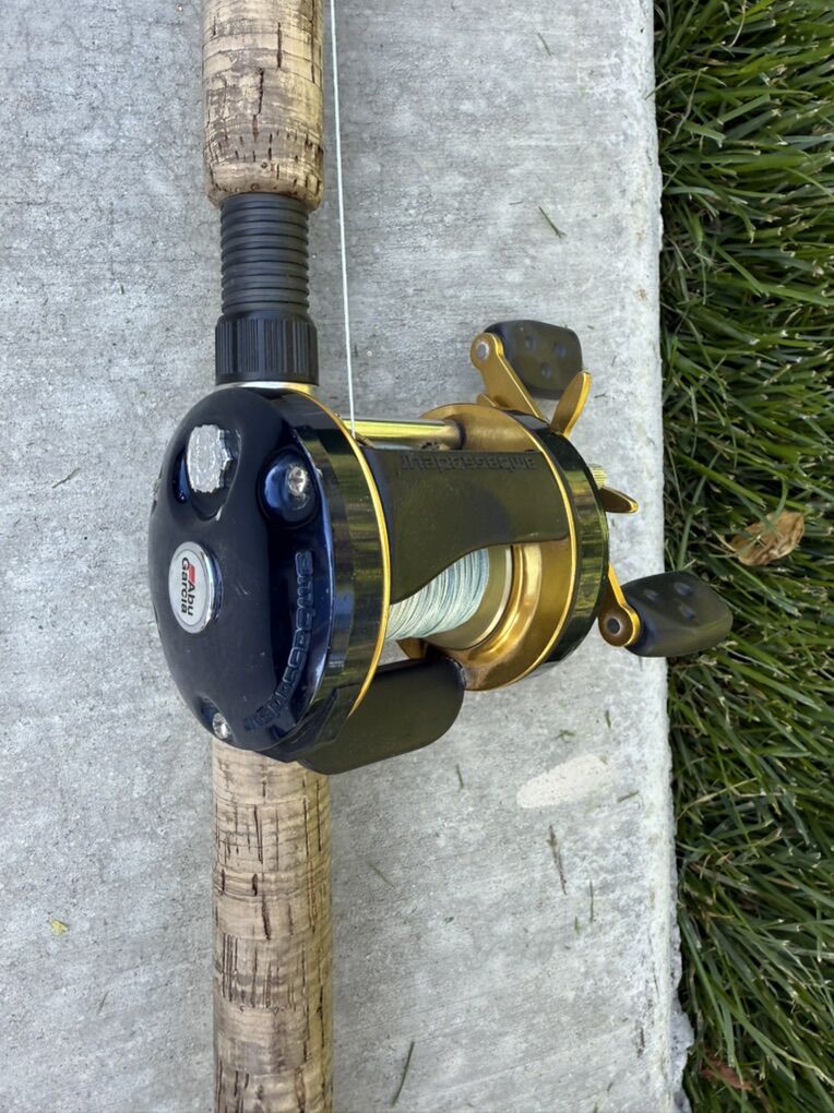 St. Croix salmon/steelhead Rod with abu Garcia C4 reel St. Croix wild river casting reel 8’ heavy power fast action 2 piece rod Line weight 15-40 pounds Lure weight 3/4-3oz.