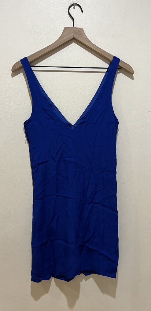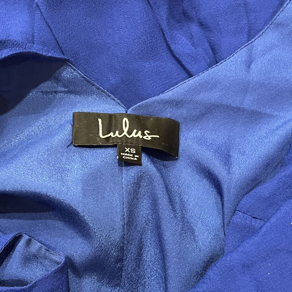 Lulus Royal Blue Deep V-Neck Knee Length Sleeveless Slip Dress - Women’s Size XS - double layer with side zipper closure - pre-owned, great condition.