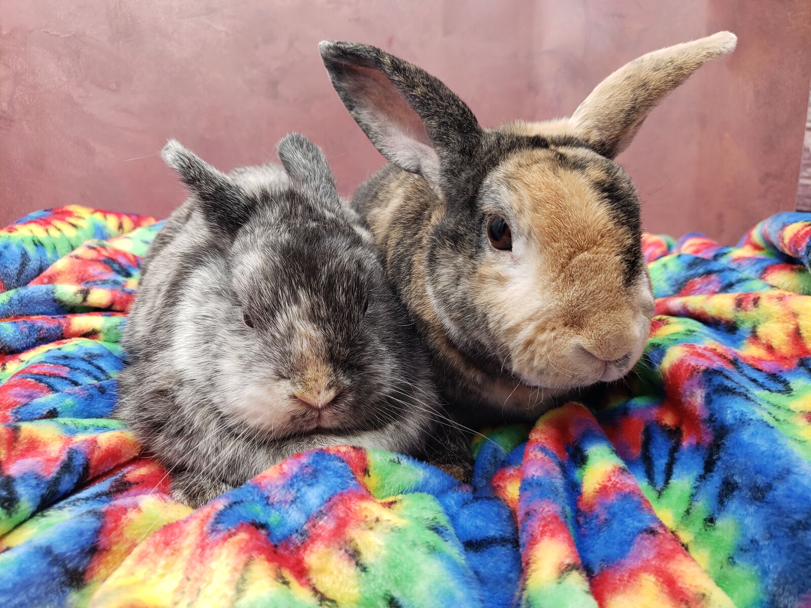 These two are a bonded pair who’ve been adored during their time with us—but it’s time they find a forever home with someone who doesn’t mind the occasional extra litter box chore and is ready to be worshipped by a small, overly affectionate bun.