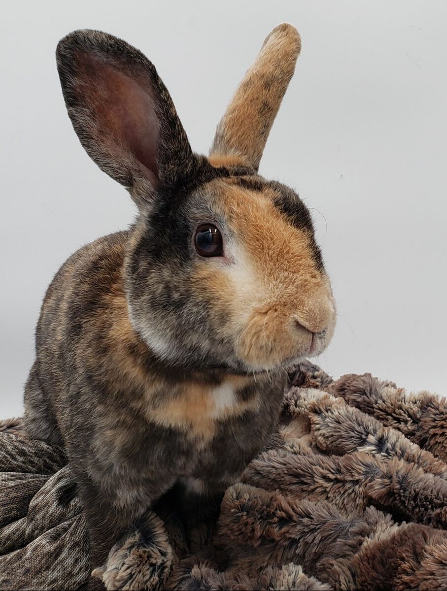 Now, Orley does have a little bit of a... gastrointestinal mystery. Despite visits to multiple vets, numerous medications, all the tests, and enough probiotics to qualify as a yogurt commercial, his gut's still doing its own thing. Translation: you’ll be scooping or refreshing his litter box a couple times a week. In return, he offers infinite cuddles, deep eye contact, and the quiet dignity of a rabbit who knows love is messier than we like to admit.